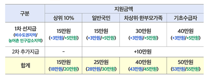 - 지급 금액 : 1인당 10만 원 (차등 없음, 일괄 동일)