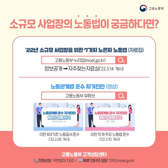 - 고용노동부 누리집 > 정보공개 > 자주찾는자료실: 소규모 사업장 노동법 자료집