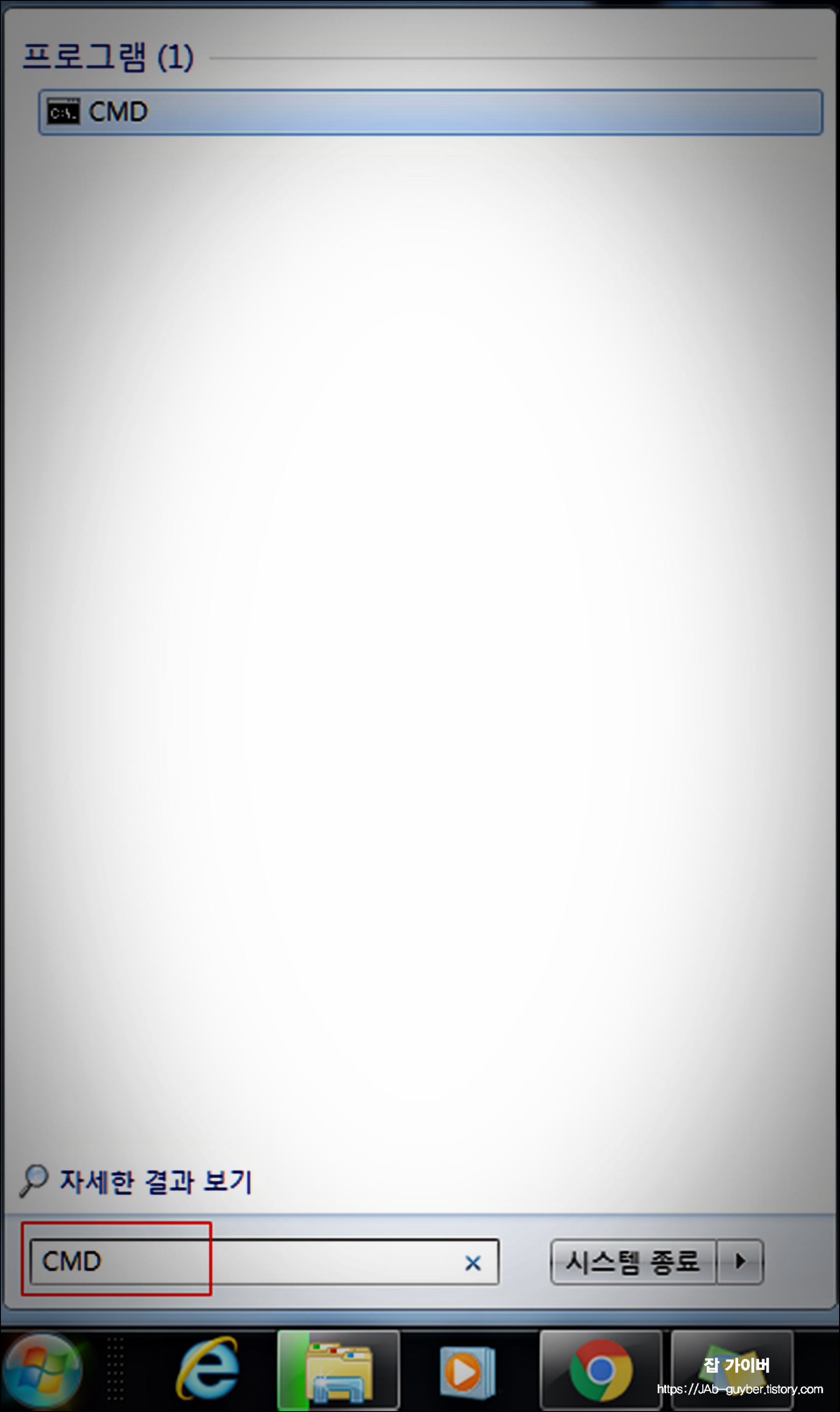 - 해당 오류를 해결하기 위해서는 시작을 눌러 CMD를 실행합니다.