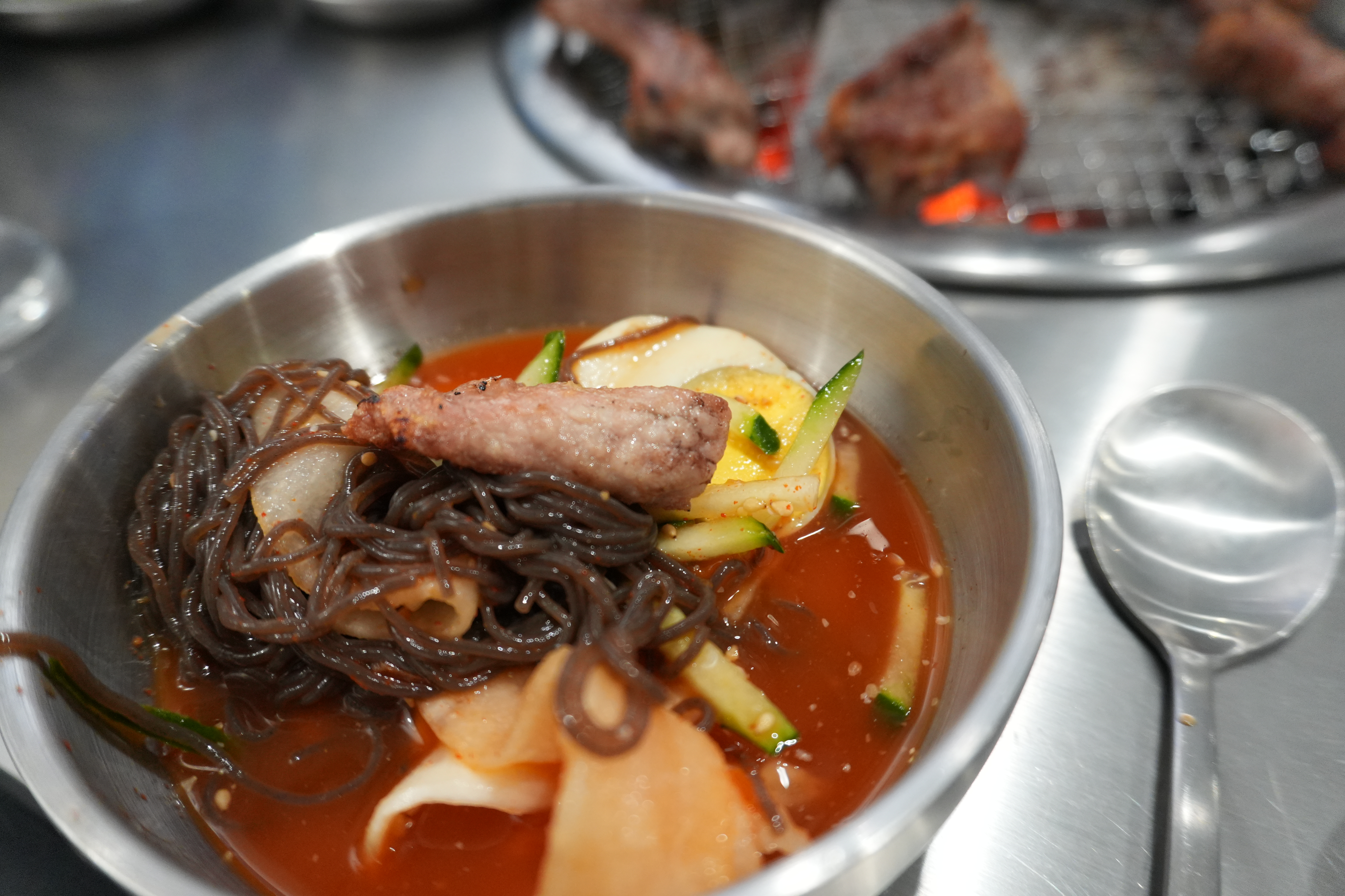갈비를 한창 맛있게 먹고 있을 때쯤, 드디어 이 집의 시그니처 메뉴 중 하나인 천수냉면이 나왔다.