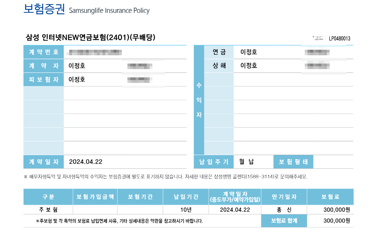 결국 저는 이렇게 정리합니다. 이번에 가입한 삼성 인터넷NEW연금보험 2401은 “평생 끊기지 않는 현금흐름”을 사 둔 장치로 의미가 있습니다.