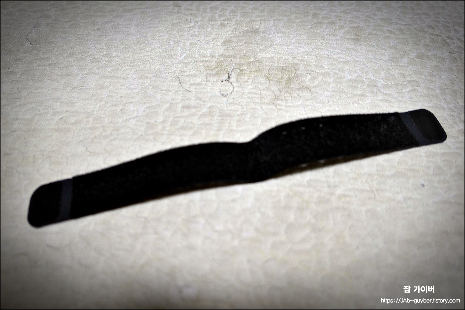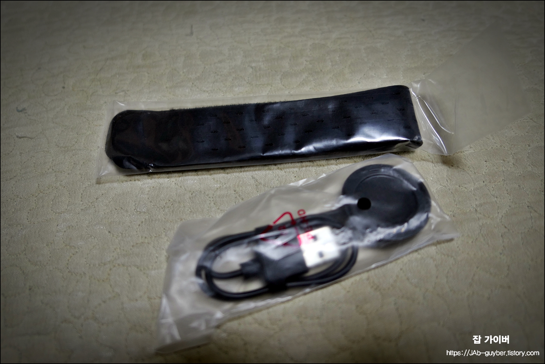추가 구성품으로는 암밴드 숏 길이와 롱 길이 각각 1개와 전용 충전기로 되어있습니다. 남자 기준으로도 숏이 딱 맞는 느낌이었고, 끈은 겉감과 안감이 좀 다르게 되어 있어 외부는 오염에 강하고, 안쪽은 피부에 닿았을 때 거칠지 않게 만든 느낌이었습니다.