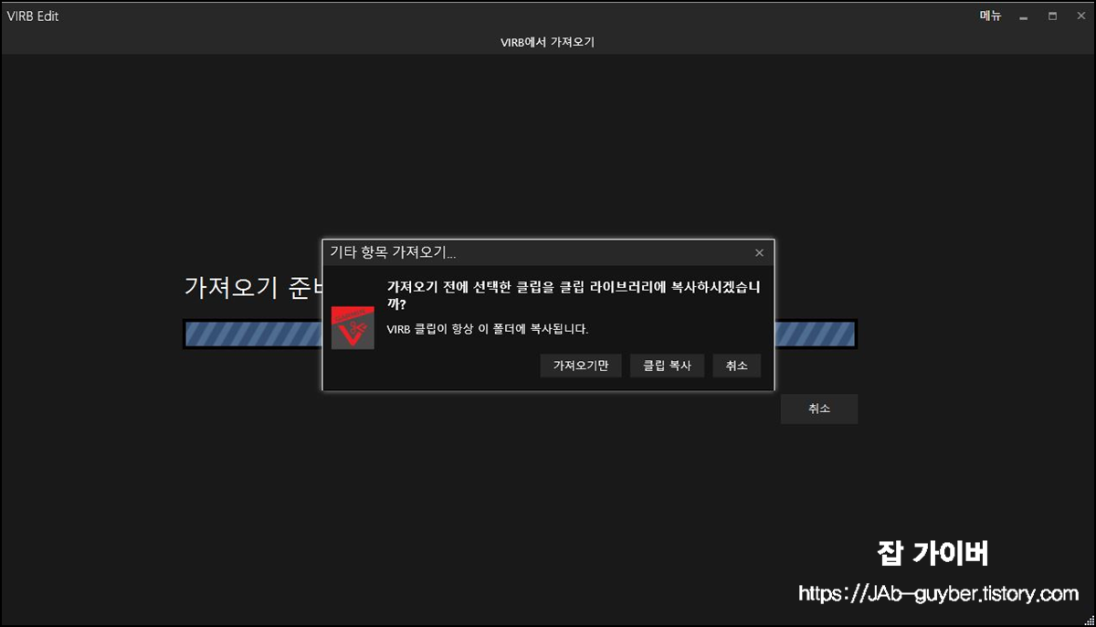 동영상을 가져오는 방법은 크게 2가지로 가져오기만 할 것인지 클립 복사를 할 것인지 선택합니다.
