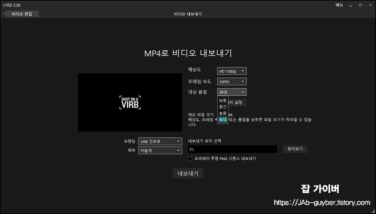 액션캠 영상편집 가민 버브 쉽고 간단하게 인코딩 - 노랗 IT 월드