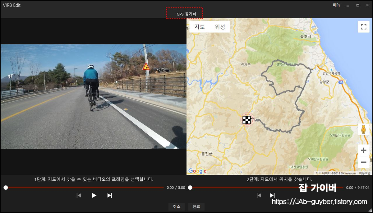 만약에 해당 GPS 지도와 라이딩 영상의 싱크가 맞지 않는다면 싱크를 맞혀줍니다.