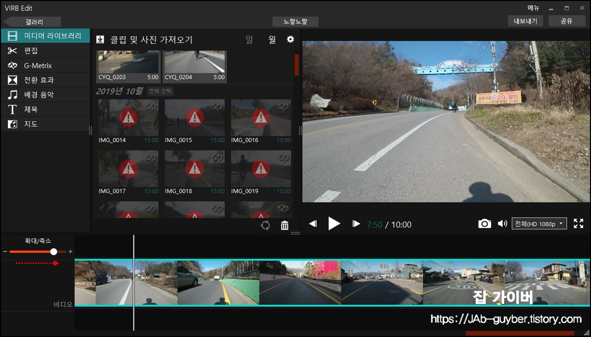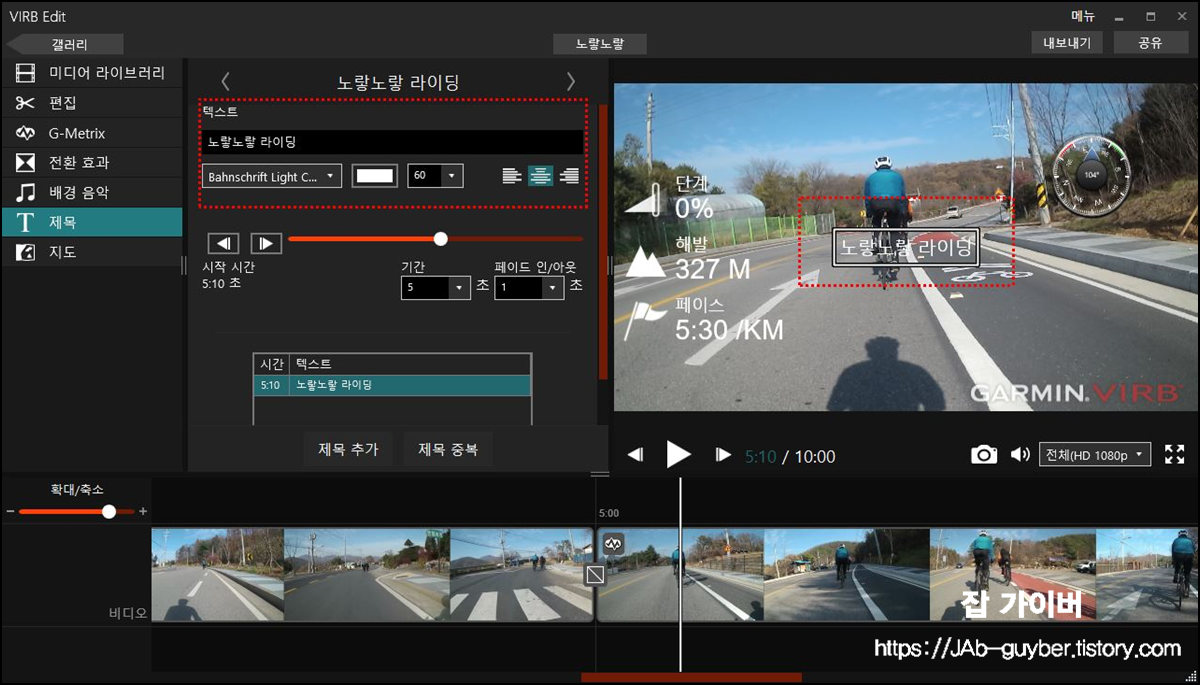 자전거라이딩 GPX 속도 케이던스 지도 동영상 삽입 편집