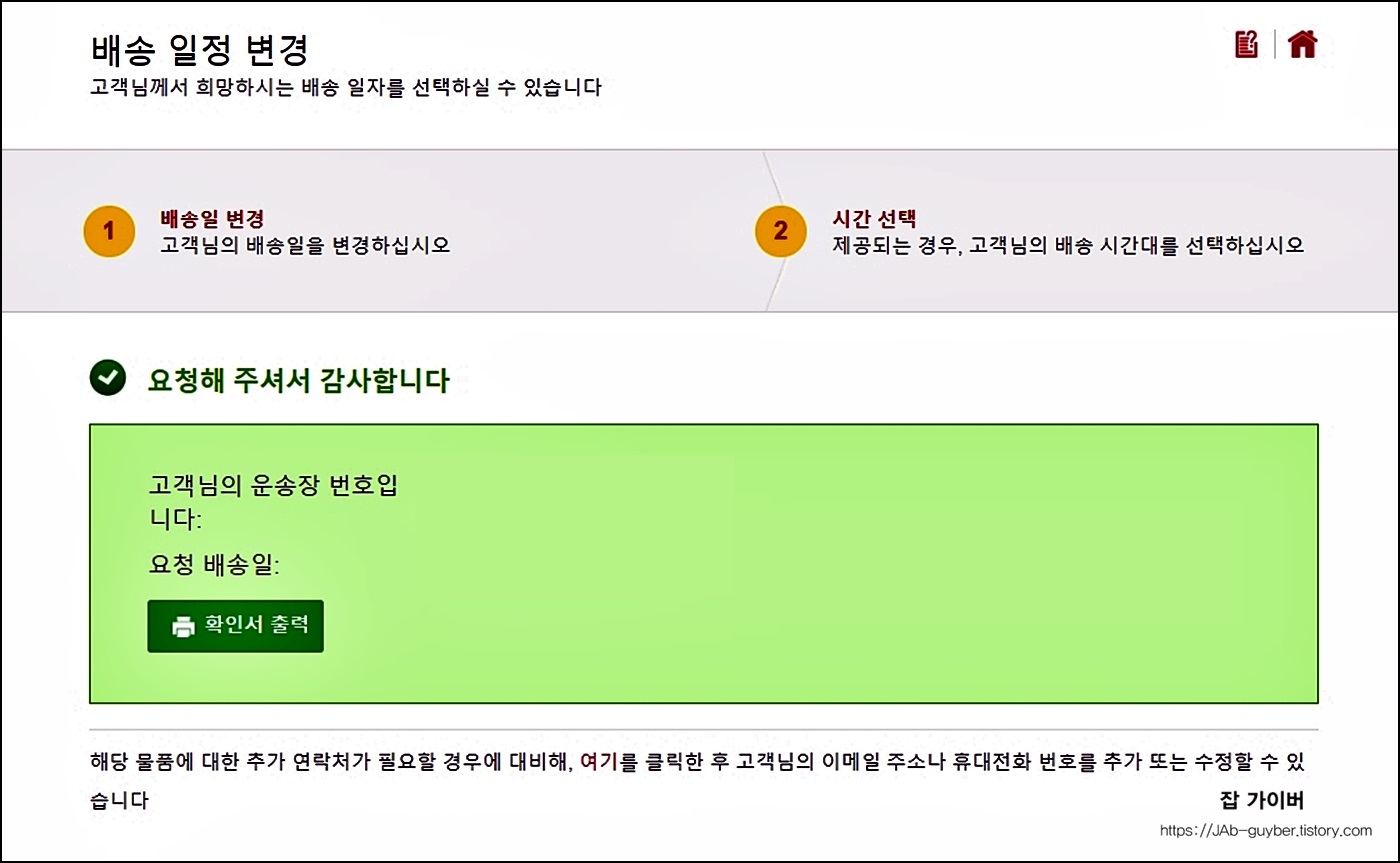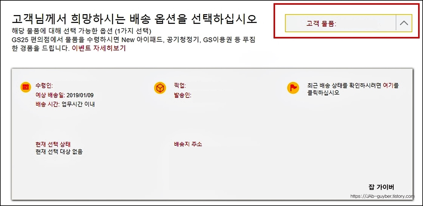 배송 일정 변경을 통해 원하는 물품을 선택합니다.