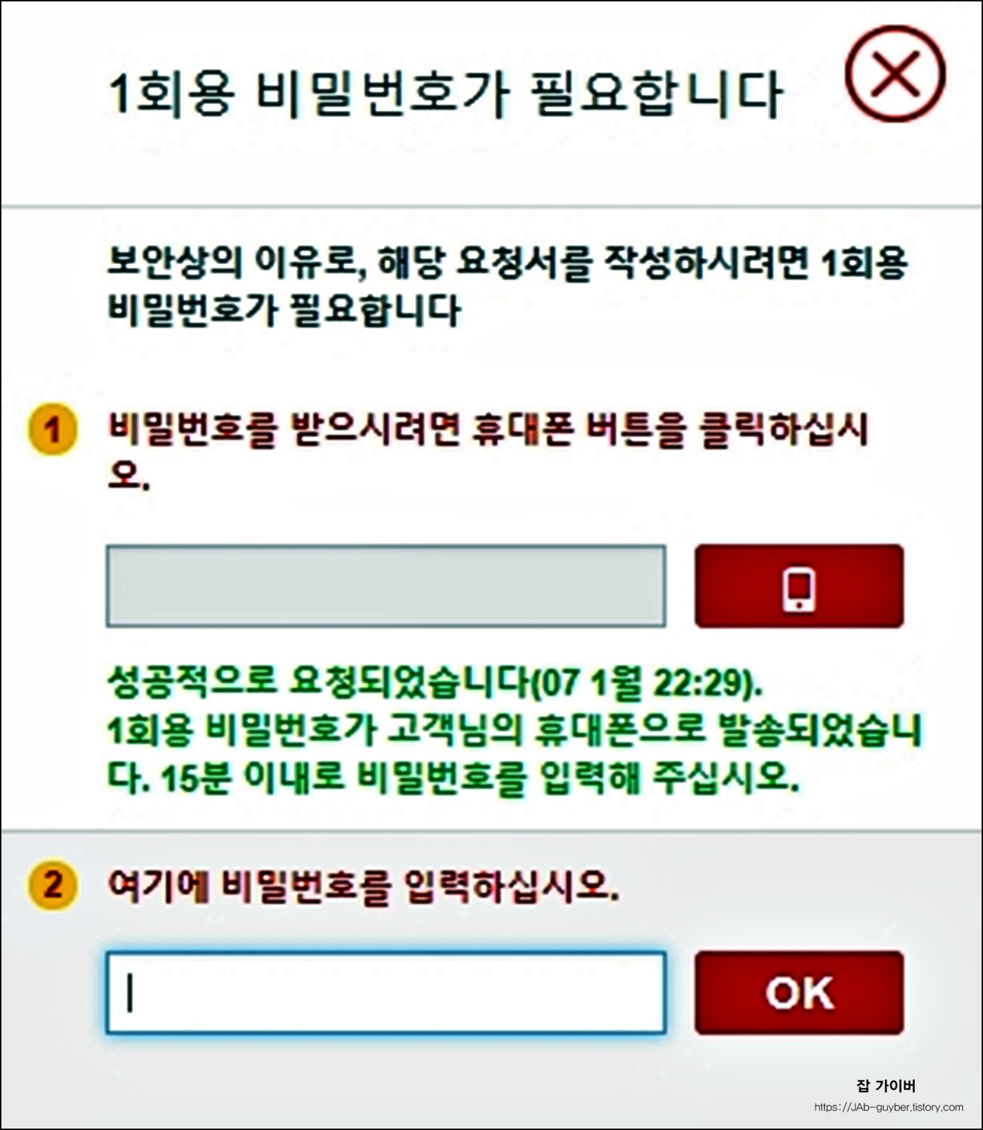 일정변경을 위한 1회용 비밀번호를 입력합니다.