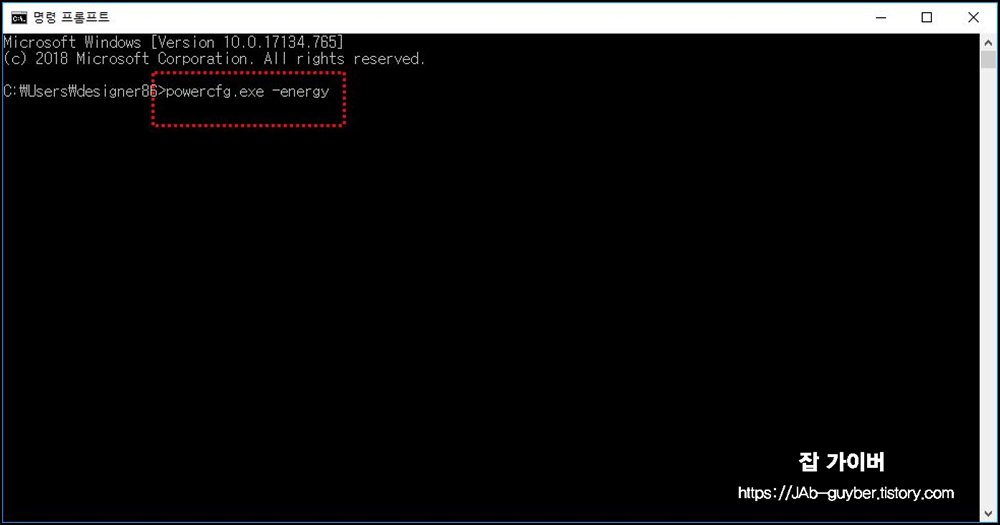 명령프롬프트가 실행되었다면 보느것과 같이 입력합니다.