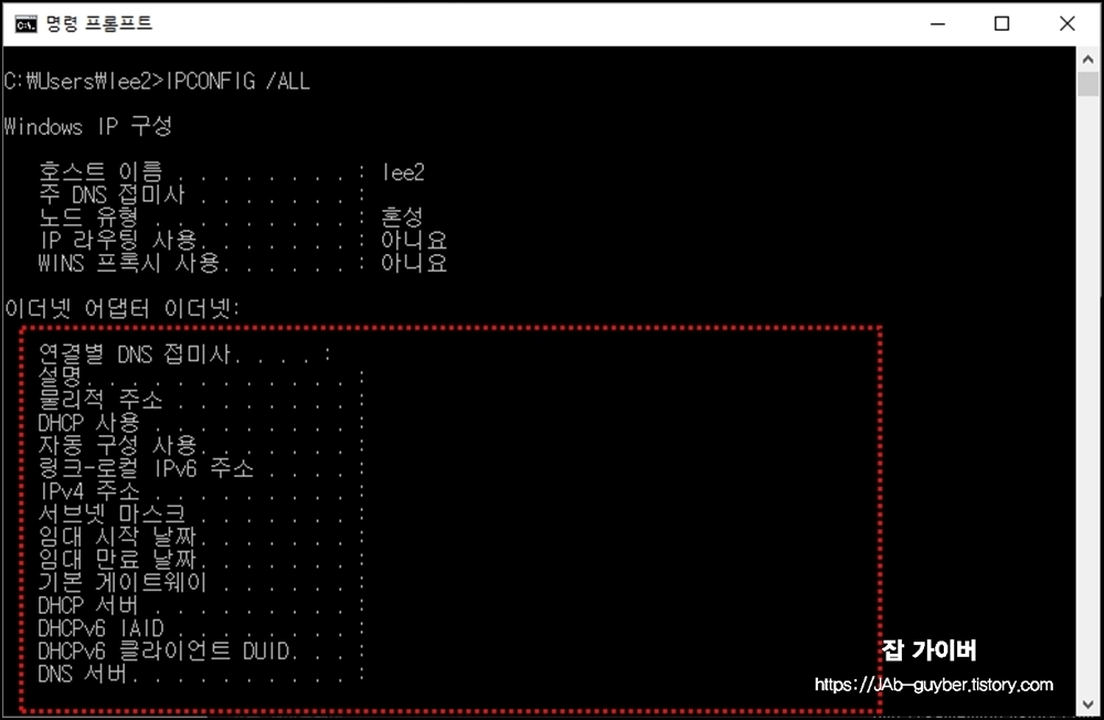 그리고 더 많은 정보를 알기 위해서는 IPCONFIG / ALL 검색합니다.