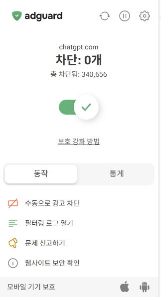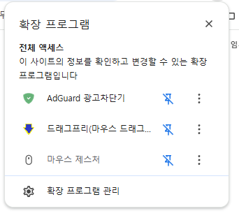 1. 사용 중인 광고차단기를 일시적으로 꺼둔다.