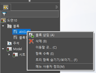 그다음 블록 삽입(Block Insert) 메뉴를 이용해 AutoCAD에서 불러온 도곽 블록을 새로 배치한다.