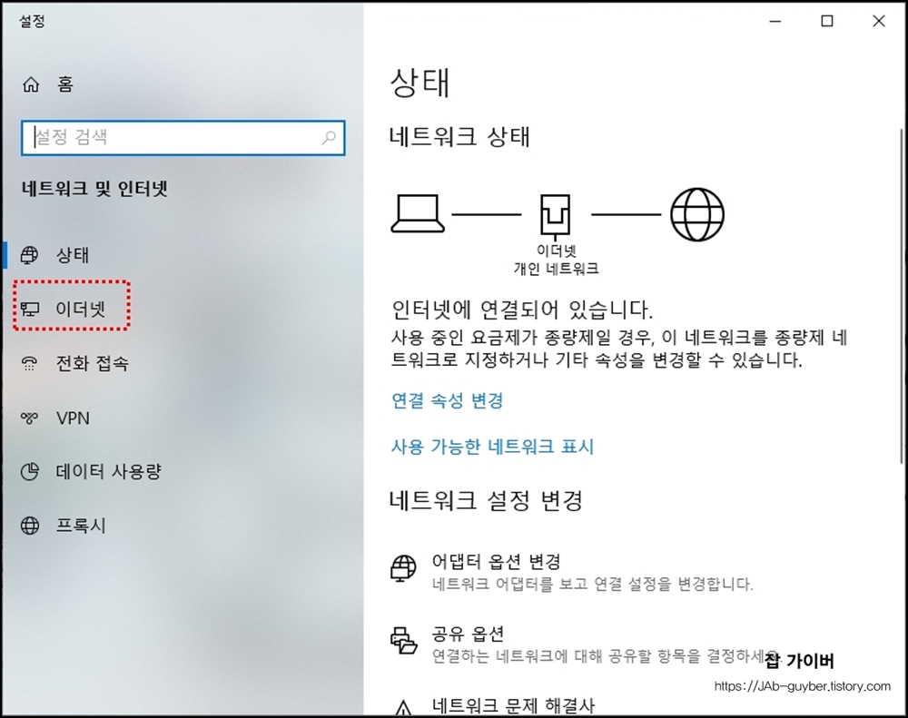 노트북 IP주소 확인방법 - PC충돌 네트워크 연결확인 및 아이피주소 변경