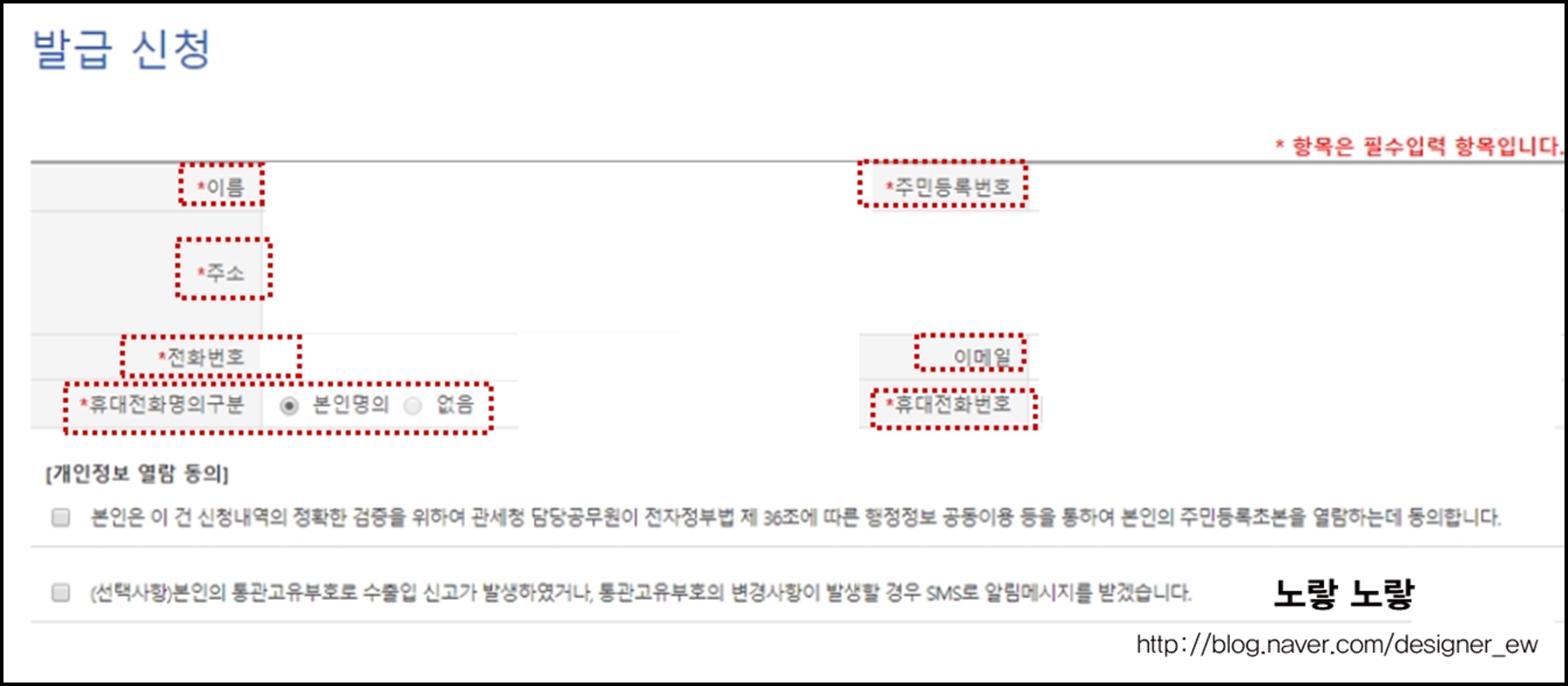 이름 및 주민등록번호,주소등을 입력하고 신청을 합니다.