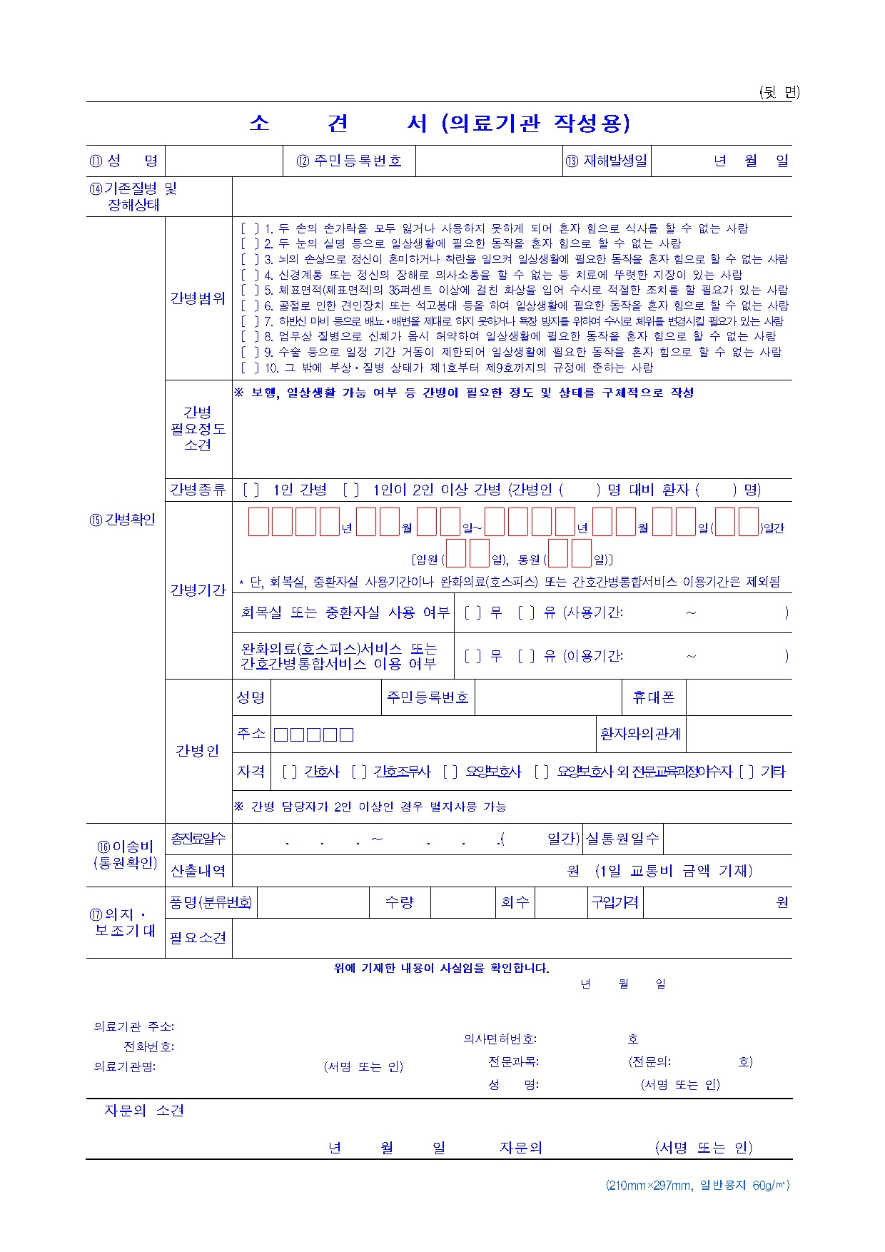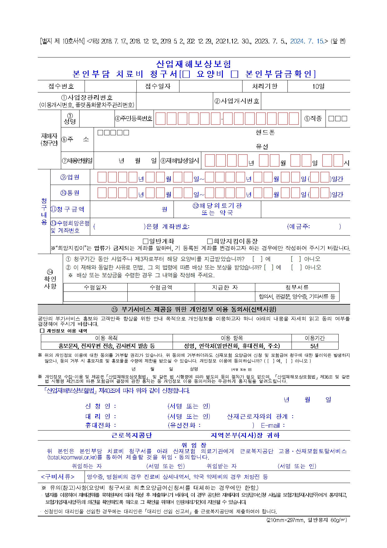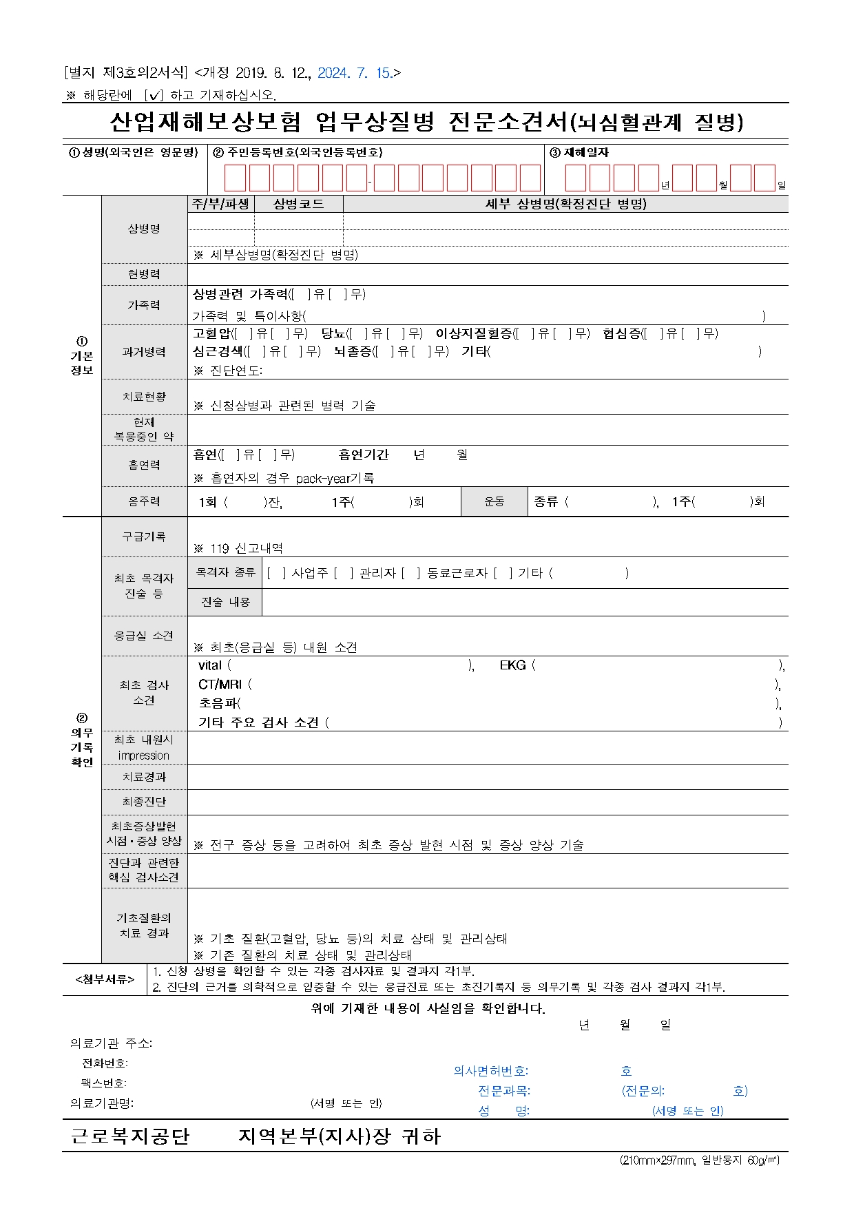 현실적으로는 주치의 소견서가 가장 중요합니다. 주치의가 “해당 비급여 치료가 업무상 재해로 인한 상병 치료에 필수적”이라는 의견을 내고, 진료비 세부내역서·영수증·수술기록지·경과기록지 등을 함께 붙여서 공단에 청구하면, 공단이 심의 후 지원 여부를 결정하게 됩니다.