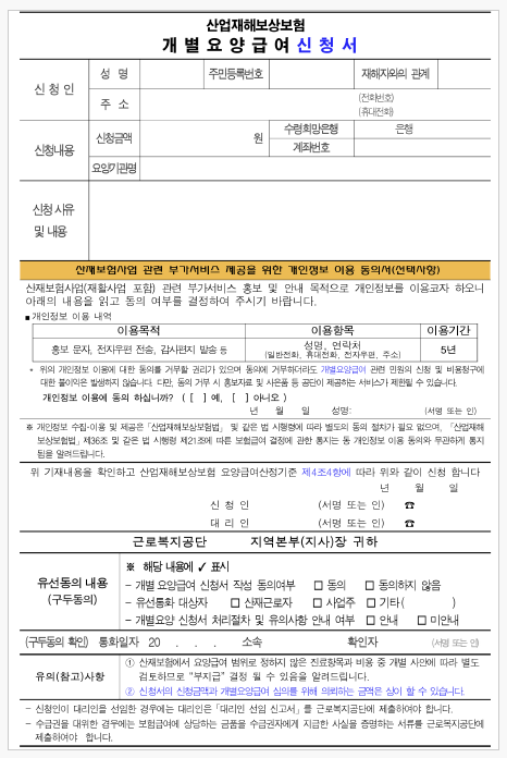 그 대신 앞서 이야기한 개별요양급여제도가 별도로 존재하고, 산재보험 쪽에서 예외적으로 비급여를 지원할 수 있는 통로를 열어 두고 있습니다. 결국 업무상 재해로 인정된 상병에 대해서는 건강보험이 아니라 산재보험 안에서 문제를 풀어야 한다고 이해하는 편이 맞습니다.