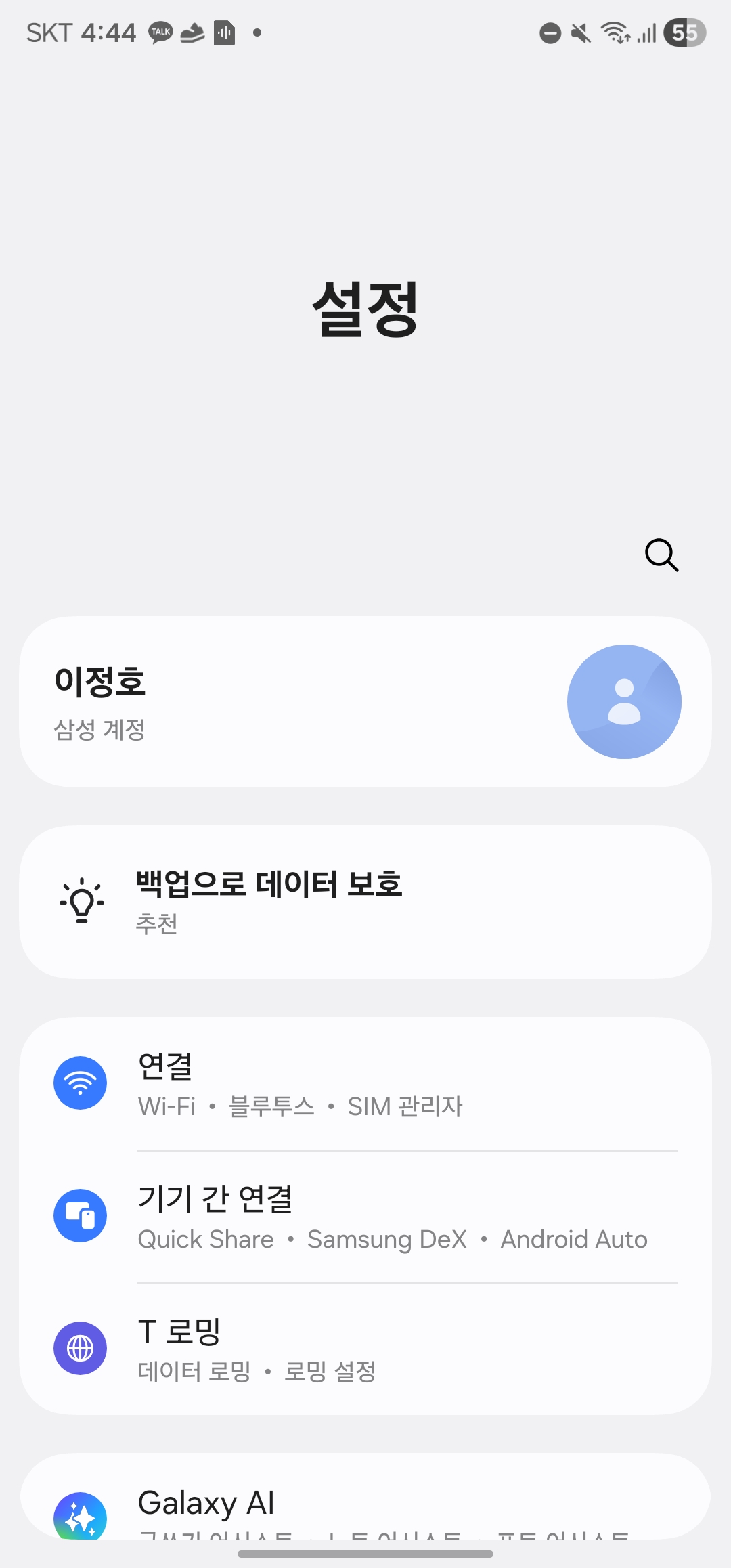 • ① 설정 앱을 열고 상단 검색창에 “Quick Share” 입력