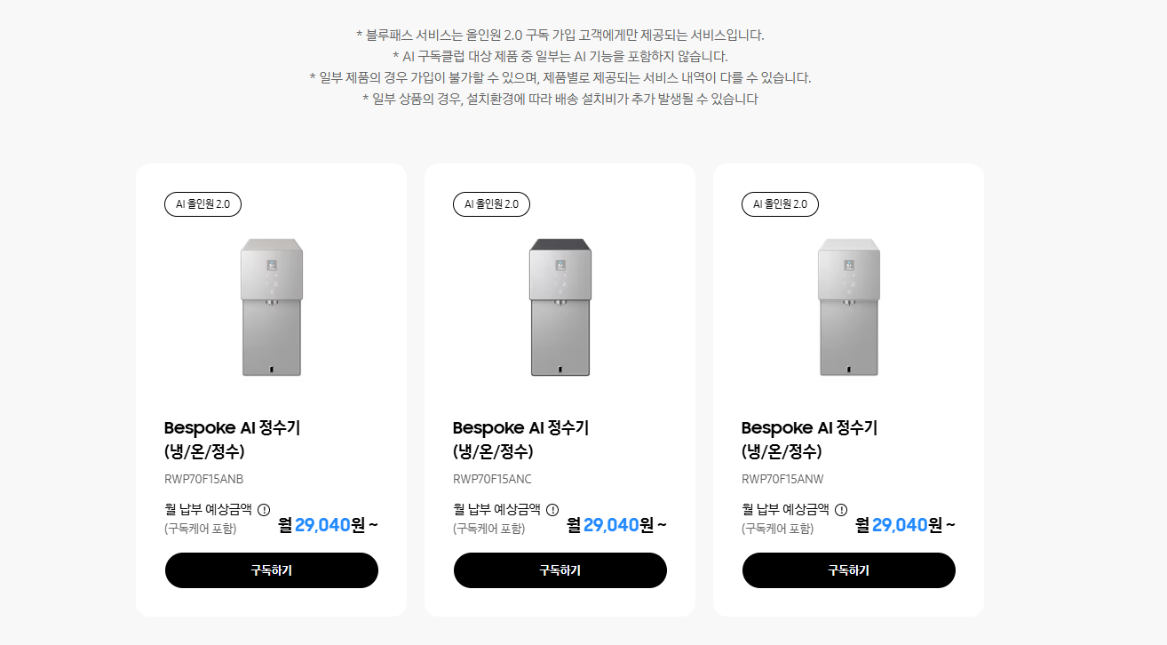 이런 고민 끝에 내린 결론이 바로 삼성전자 Bespoke AI 정수기를 삼성전자 사업자몰에서 구매하는 것이었습니다.