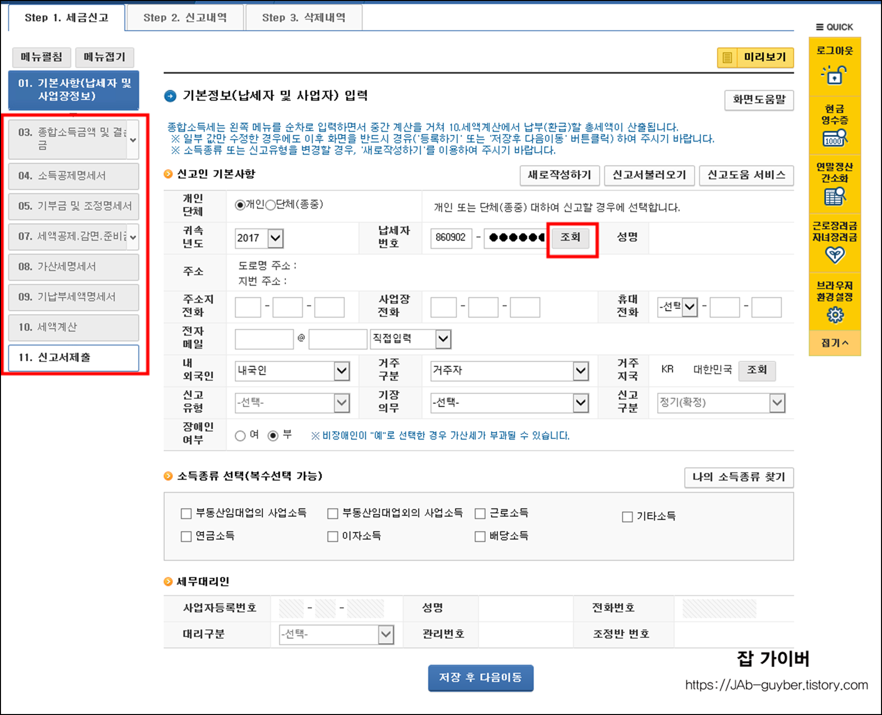 자신의 소득 종류에 맞게 선택합니다.