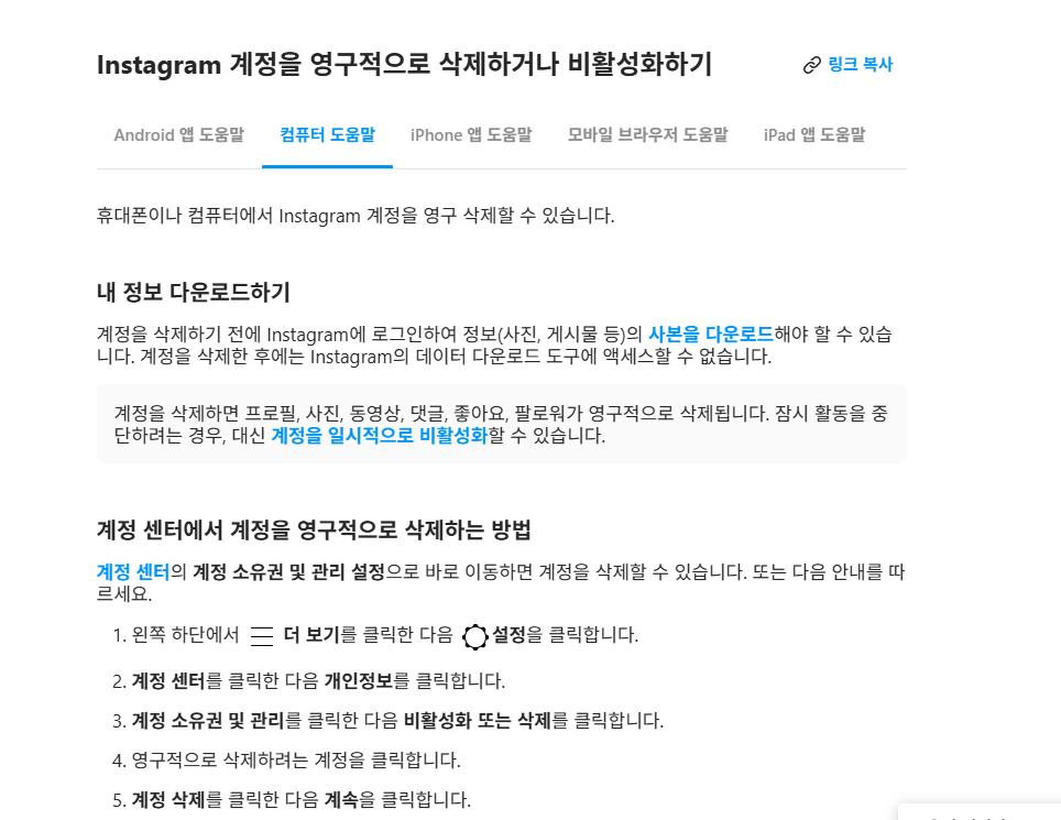 인스타그램 탈퇴 전에 꼭 해야 할 일은?