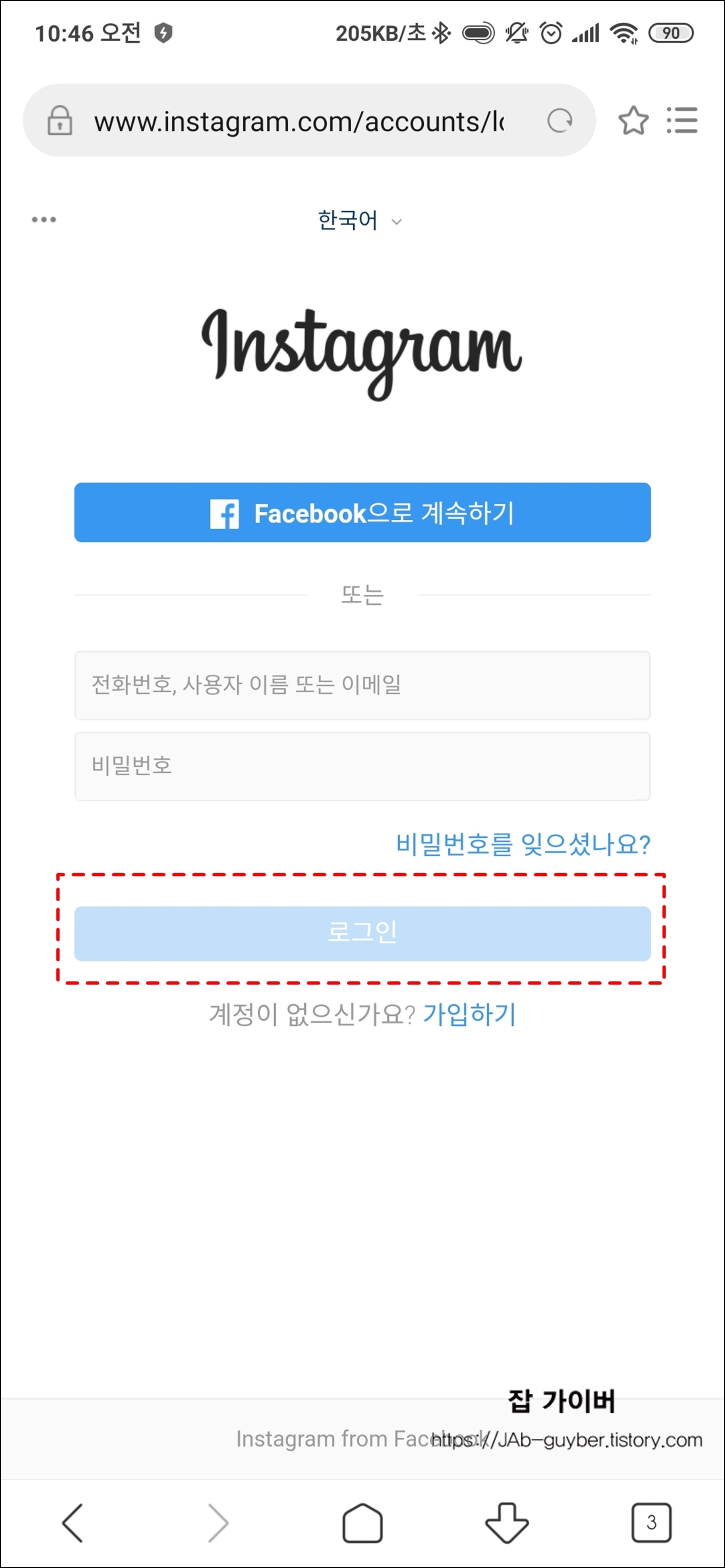 - 그럼 인스타그램 앱에서 인터넷 창으로 변경되어 인스타그램에 접속됩니다.