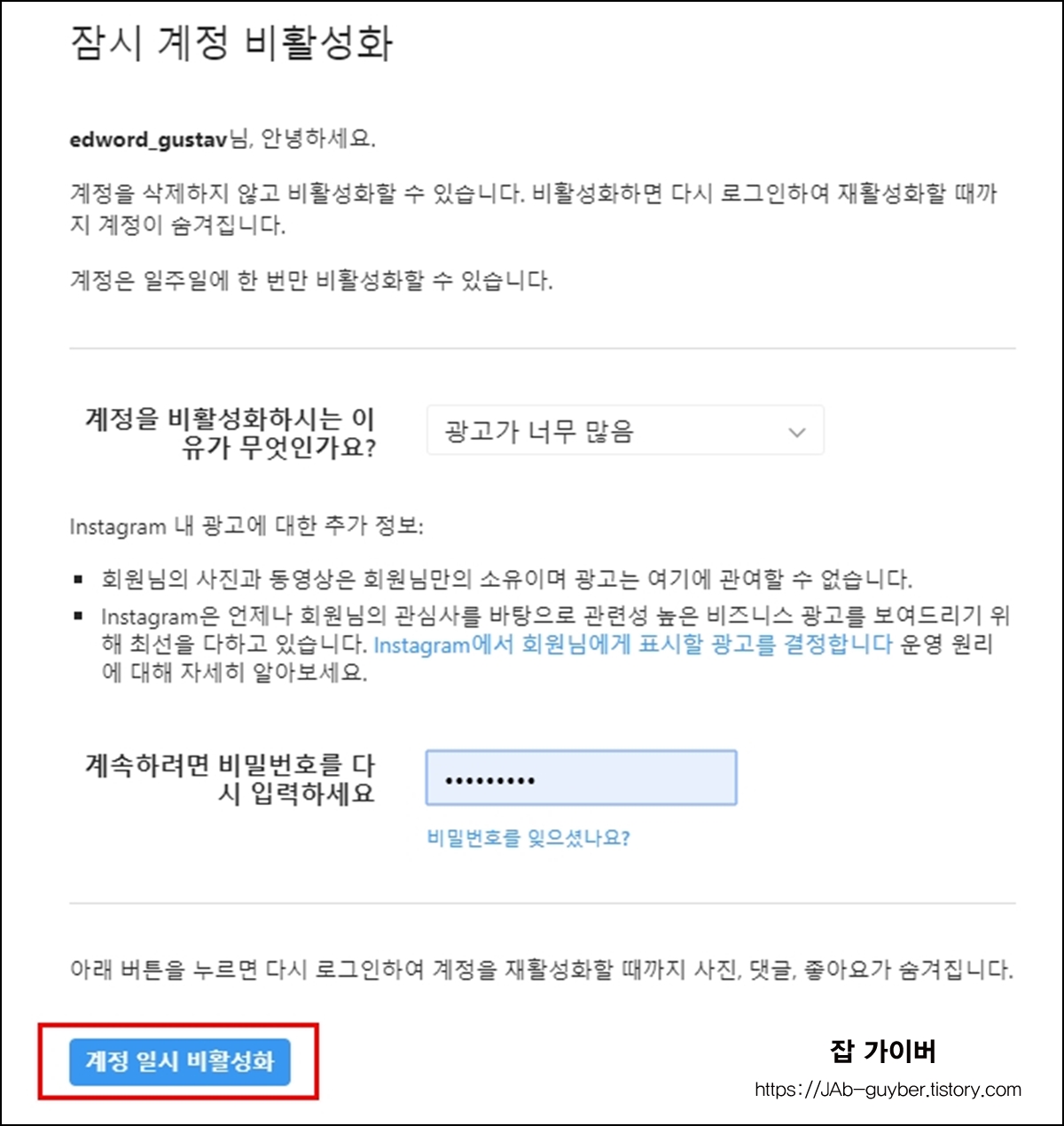 인스타그램 계정 비활성화 FAQ
