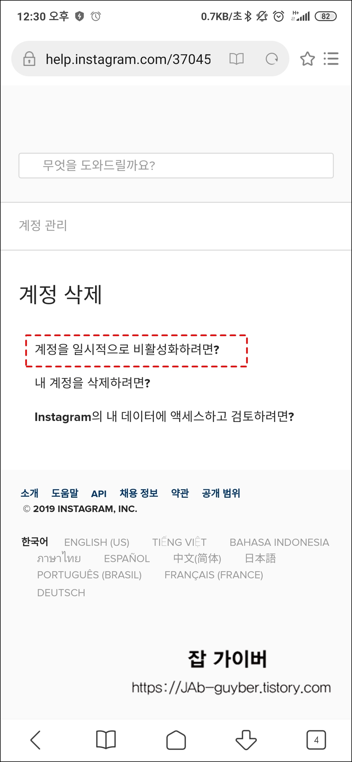 비활성화가 아니라 인스타그램 계정을 아예 탈퇴하고 싶다면 아래 포스팅을 참고하세요