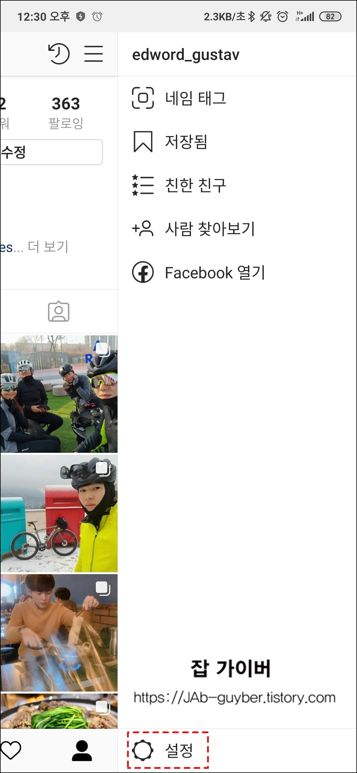 - 하단 내 프로필 → 우측 상단 메뉴(줄 3개)를 누릅니다.