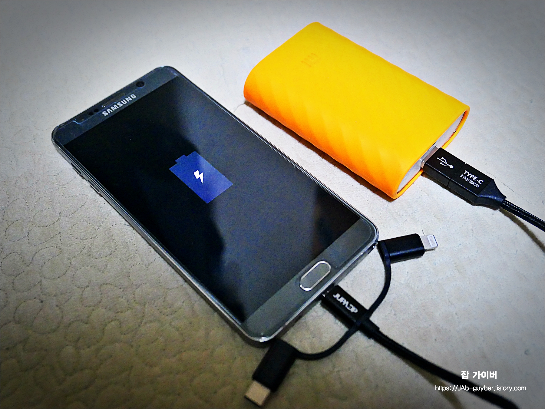 실제로 마이크로5핀과 C타입 그리고 아이폰 모두 충전 테스트를 해봤으며 모두 정상적으로 스마트폰 충전이 되며 고속충전이 가능합니다.