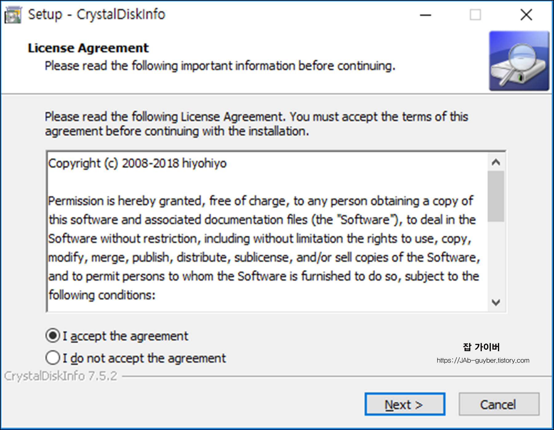 크리스탈 디스크 인포 설치가 완료되었으며 Lanuch CrystralDiskInfo 체크하면 설치 완료 후 바로 프로그램이 실행됩니다.