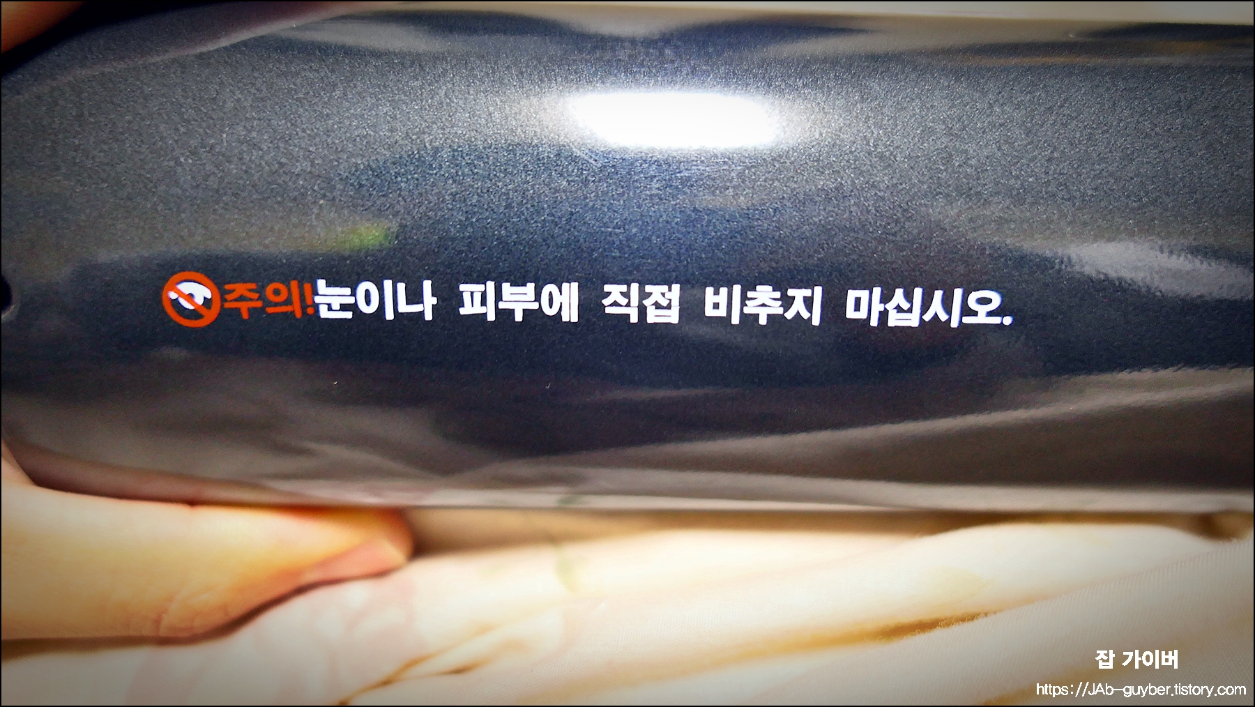 실제 제대로 작동유무는 동봉된 종이에 비췄을대 파란색 불빛이 비쳐지는것을 보면 확인할 수 있습니다.