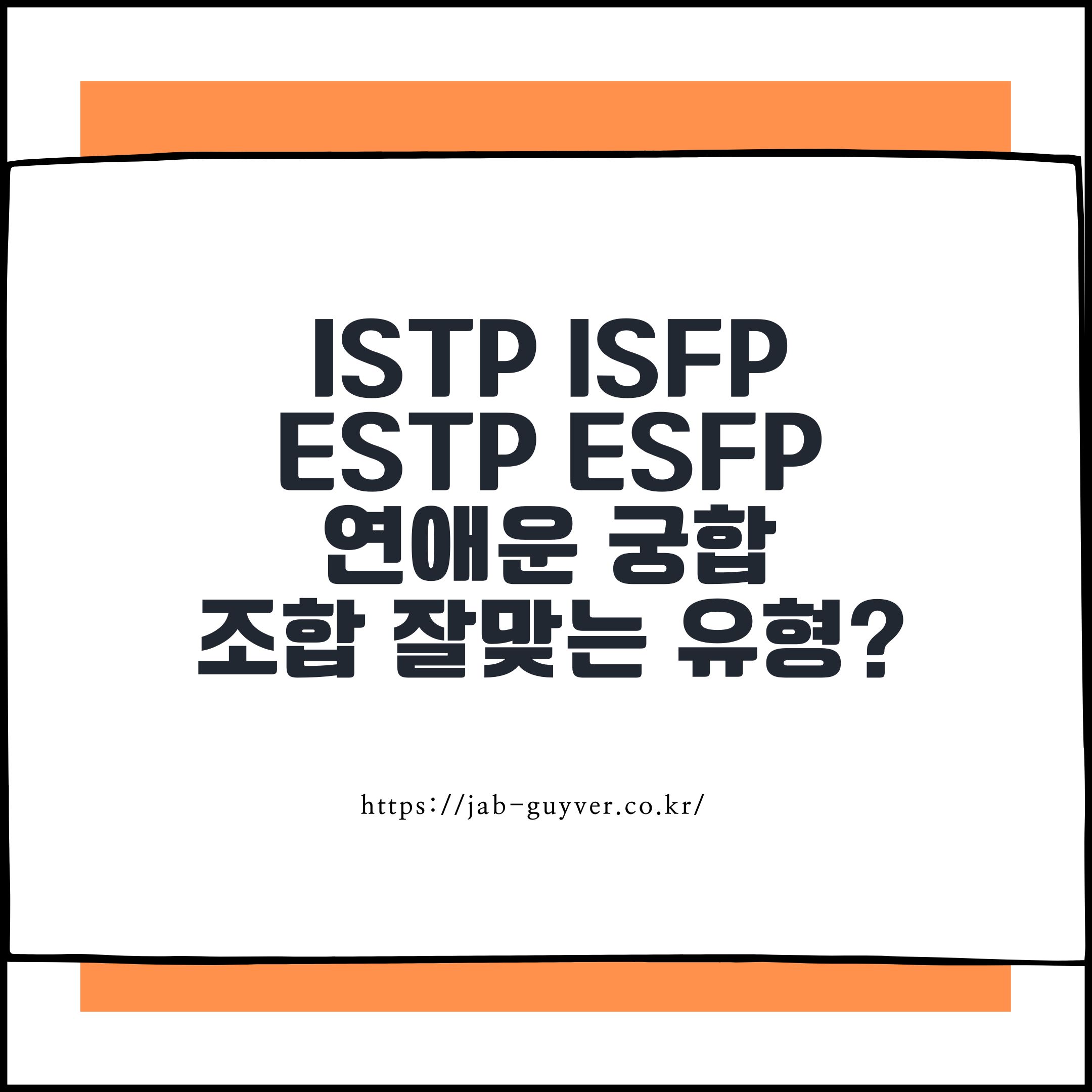 | ISTP | 자율·행동 | ESFP, ESTP, ISFP | ENFJ, INFJ |