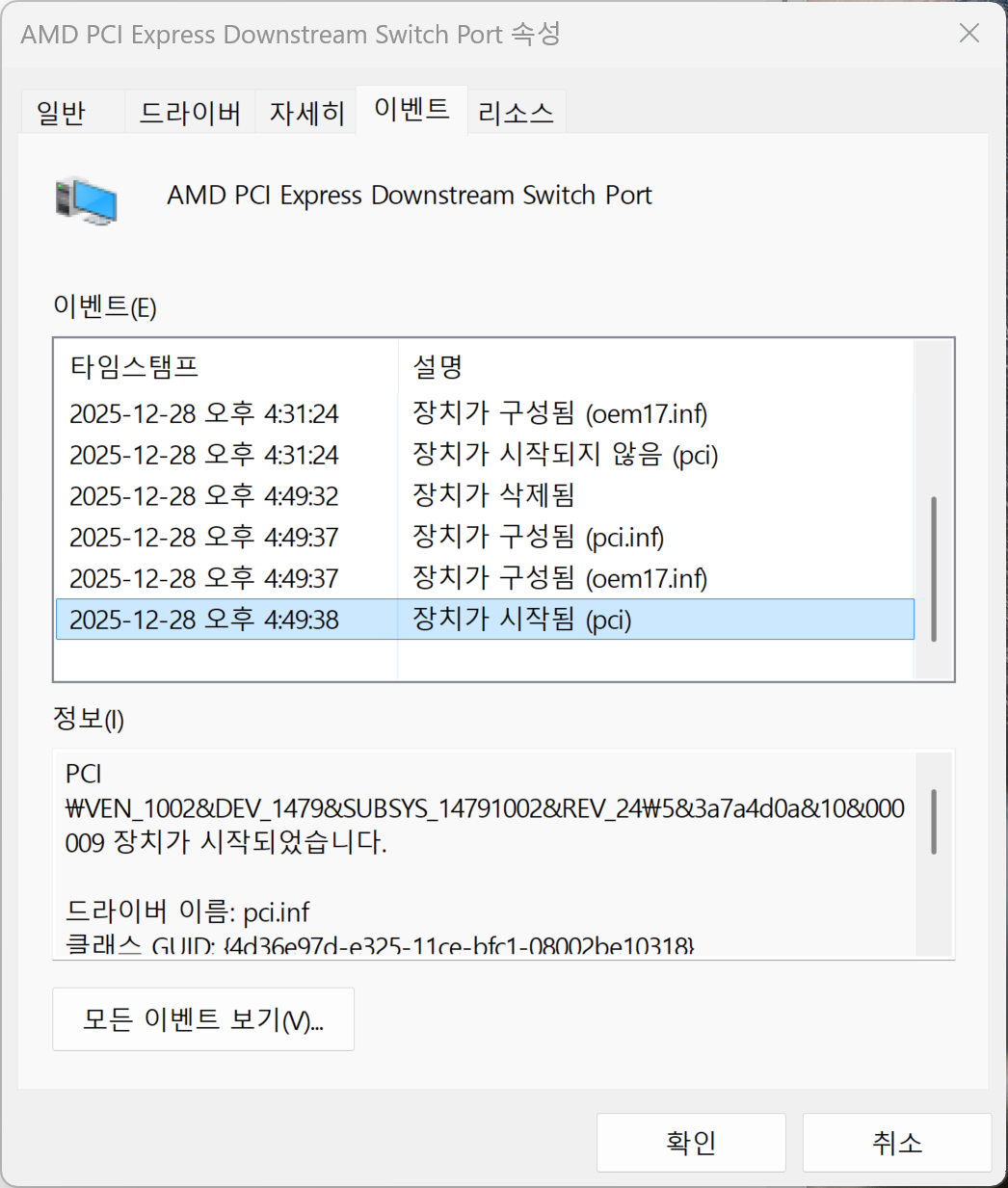 실제로는 윈도우 재설치 과정에서 PCIe Root Port 구조가 초기화되기 때문에 문제가 사라지는 경우가 많다.