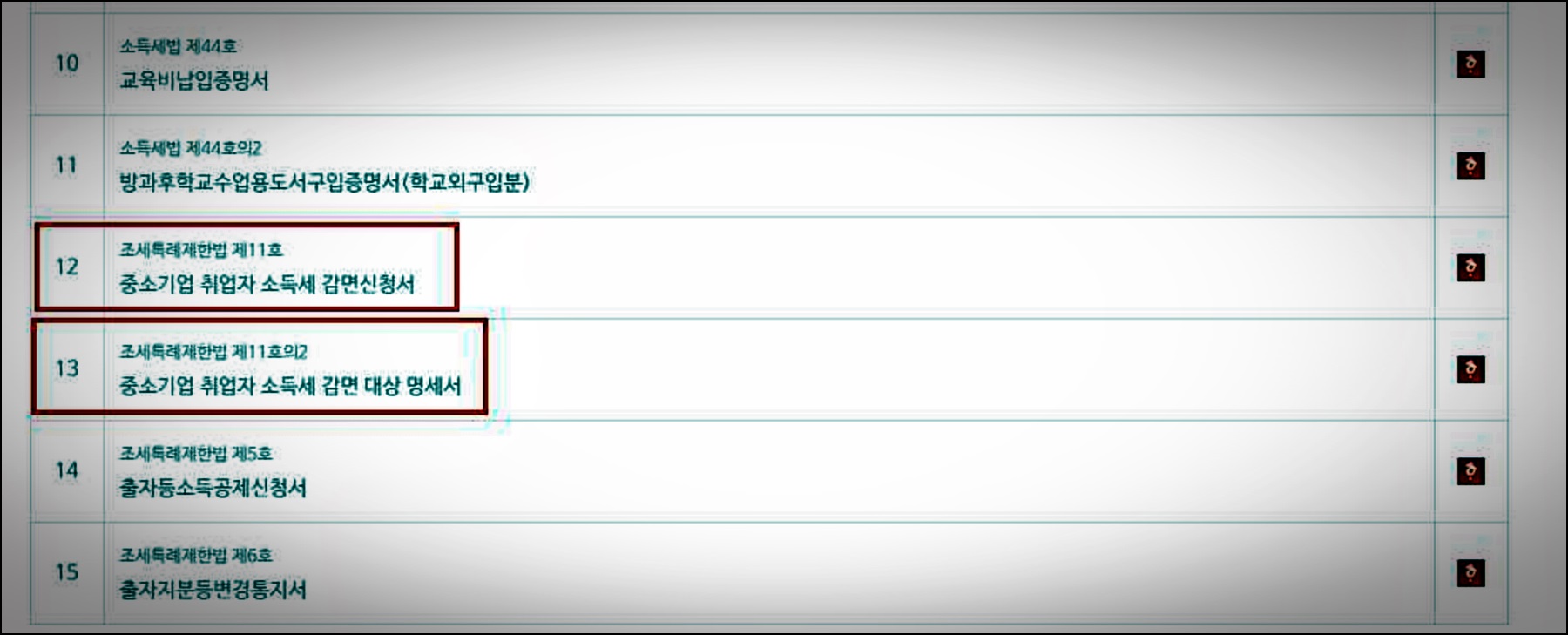 - 국세청 [홈택스] 또는 [회사 연말정산]을 통해 소득세 감면 적용