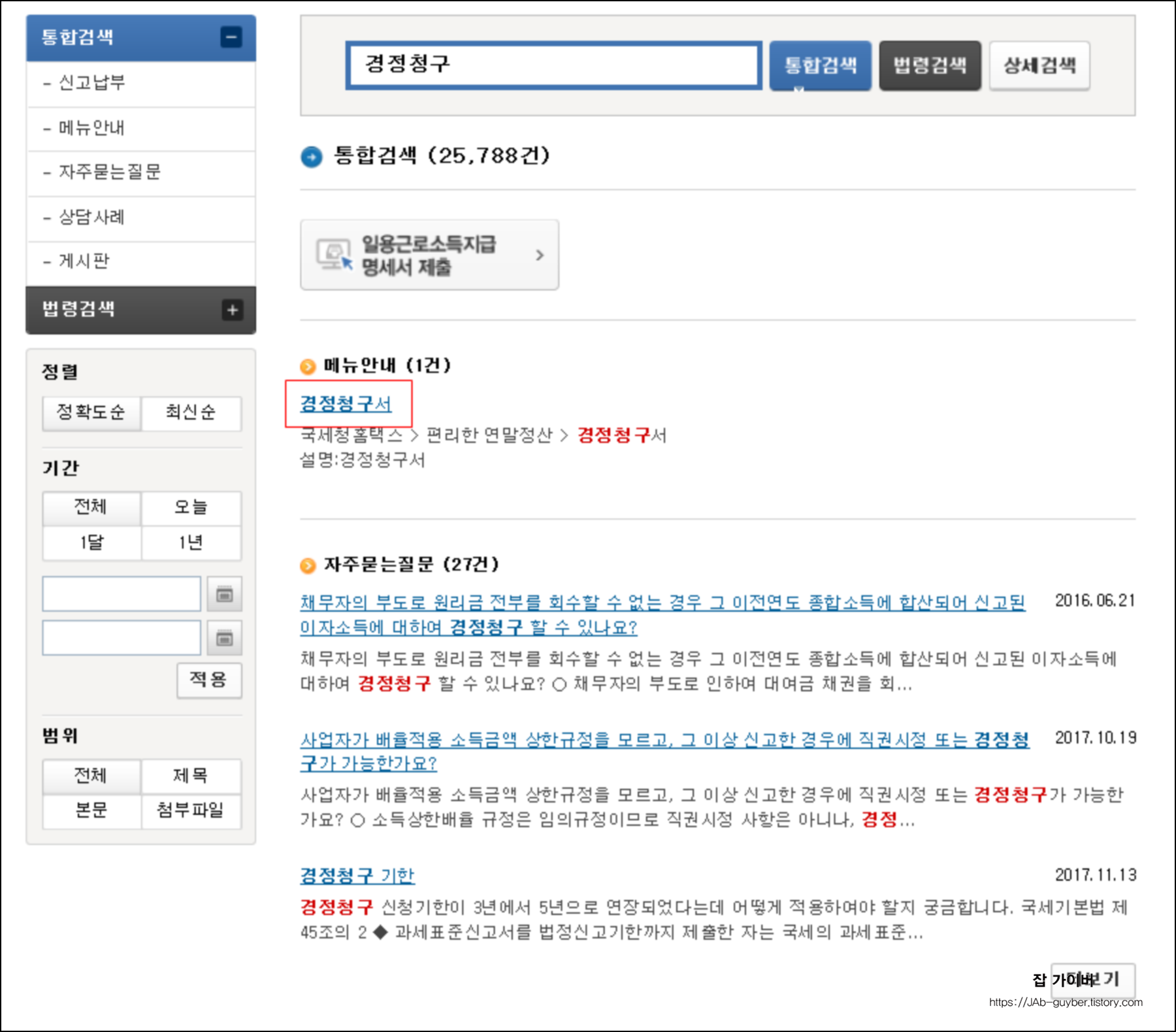 - 검색창에 경정청구 검색합니다.