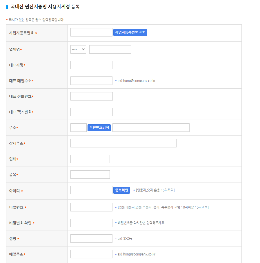 1) 원산지증명센터 사용자 등록부터