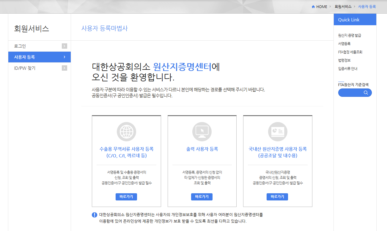 1) 원산지증명센터 사용자 등록부터