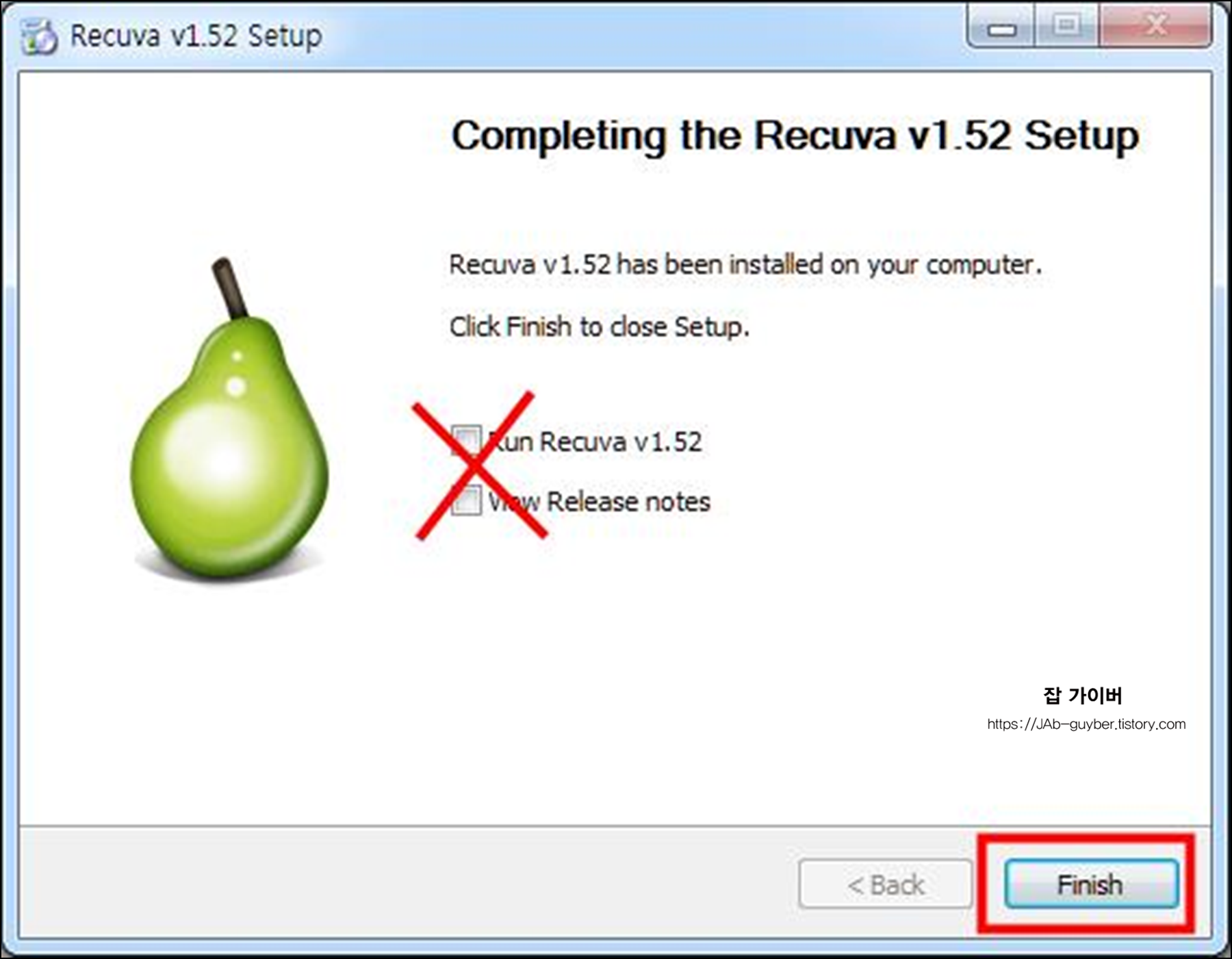 설치가 완료되었다면 만약 크랙 버전을 사용할 분들이라면 Run Reuva 버튼을 체크 해제하고 마무리하세요