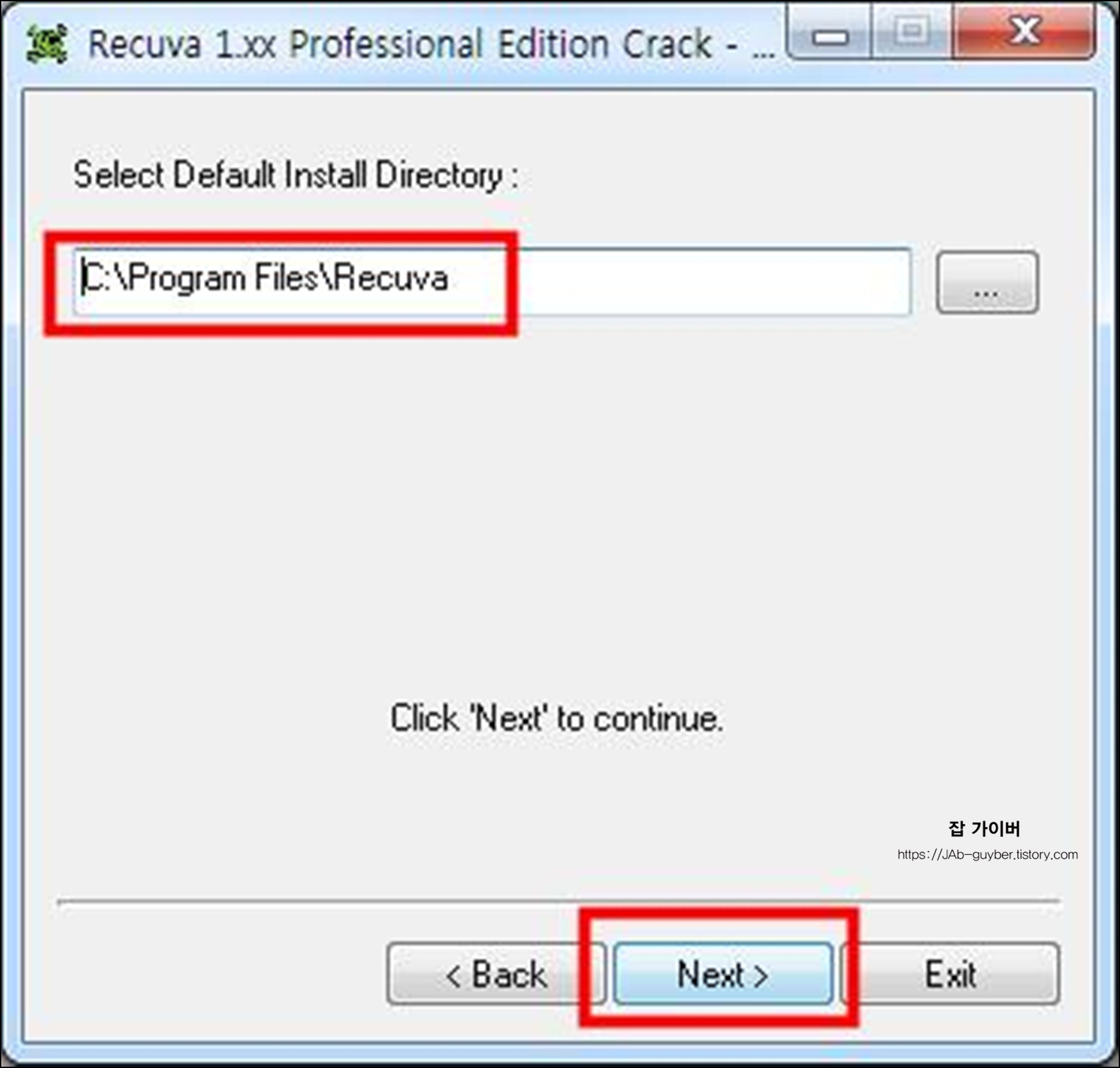 설치시에는 기본적으로 설정된 레쿠바 경로를 자동으로 잡아줍니다.