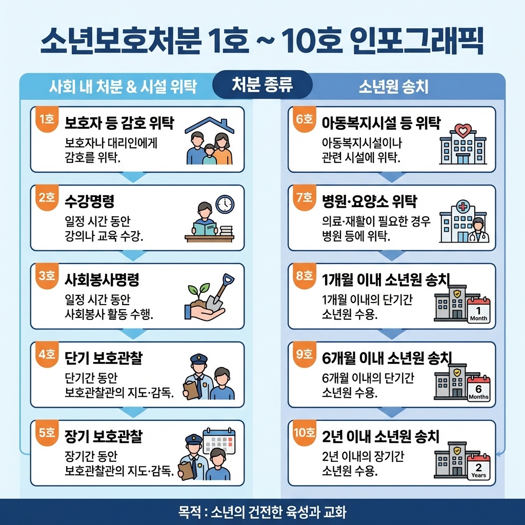 소년법 보호처분 1호부터 10호까지 한눈에 보기