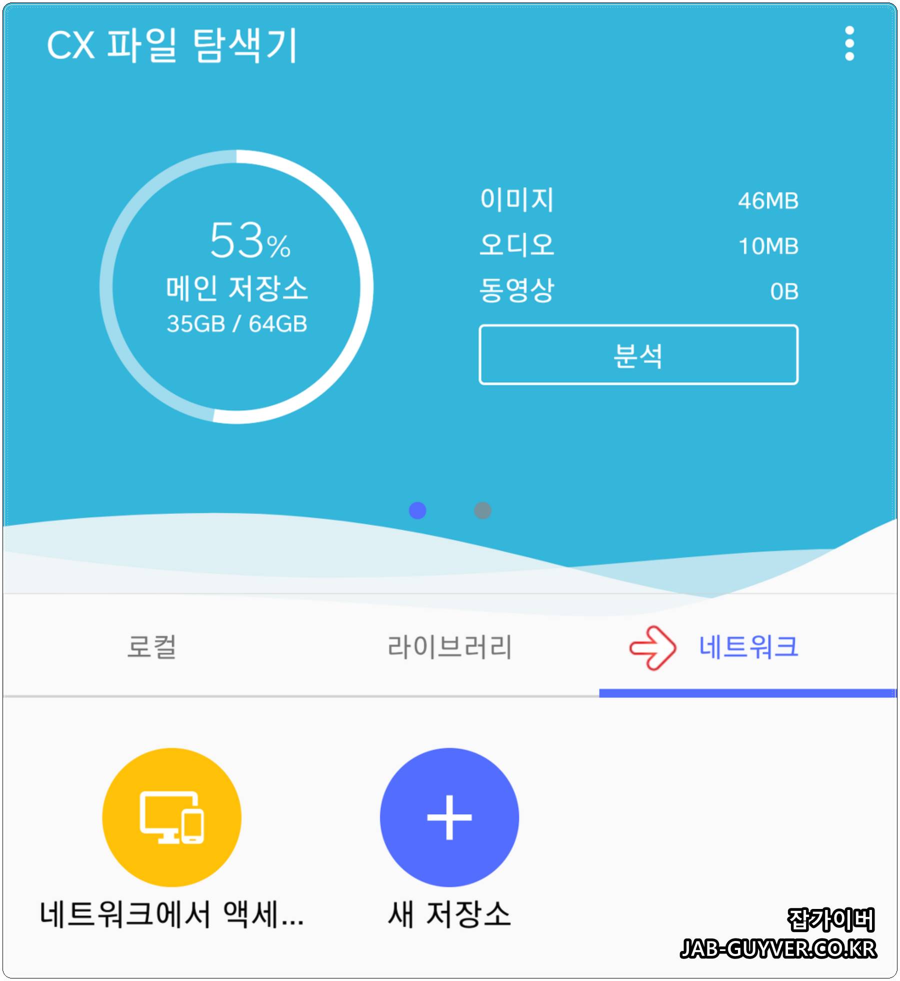 CX 파일탐색기 앱을 설치한 뒤 실행합니다. UI가 단순한 편이라 폴더 탐색과 공유 정도는 금방 익숙해집니다.