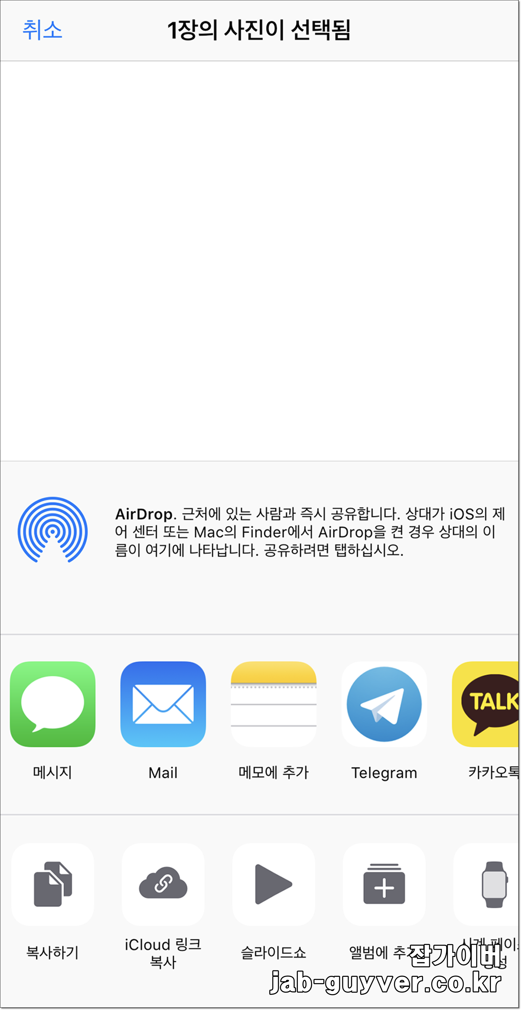 에어드롭은 사진/동영상뿐 아니라 PDF, 문서, 메모, 웹 링크, 연락처 카드까지 폭넓게 공유할 수 있고, 전송 용량 제한도 체감상 거의 없다. 특히 같은 애플 생태계 안에서는 속도와 품질 유지가 강점이라, “원본 그대로” 옮기고 싶을 때 가장 먼저 떠오른다.