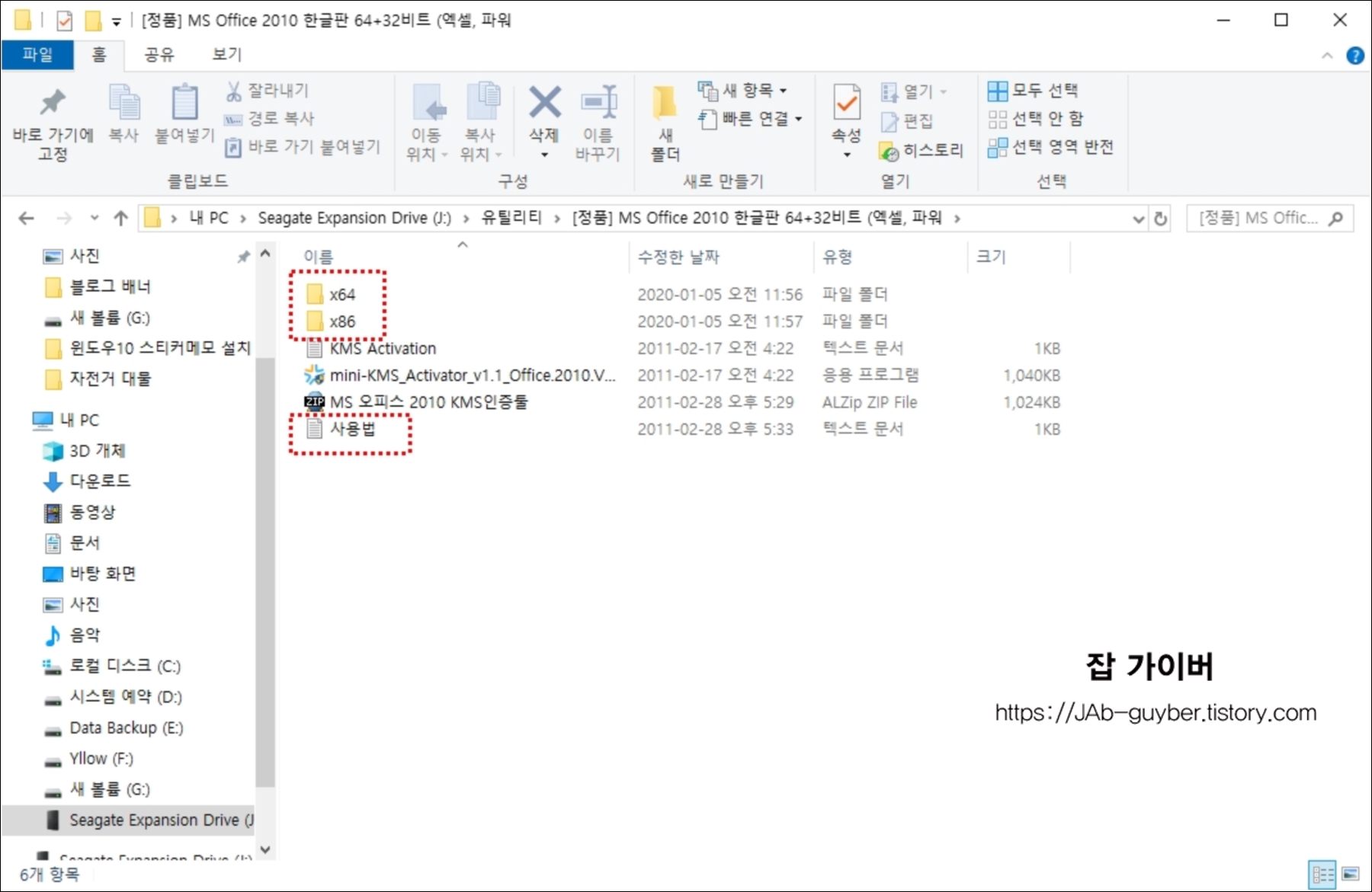 폴더를 열어보면 윈도우32bit용과 64bit용 두가지 설치파일이 있으며 kms인증툴과 사용방법을 확인할 수 있습니다.