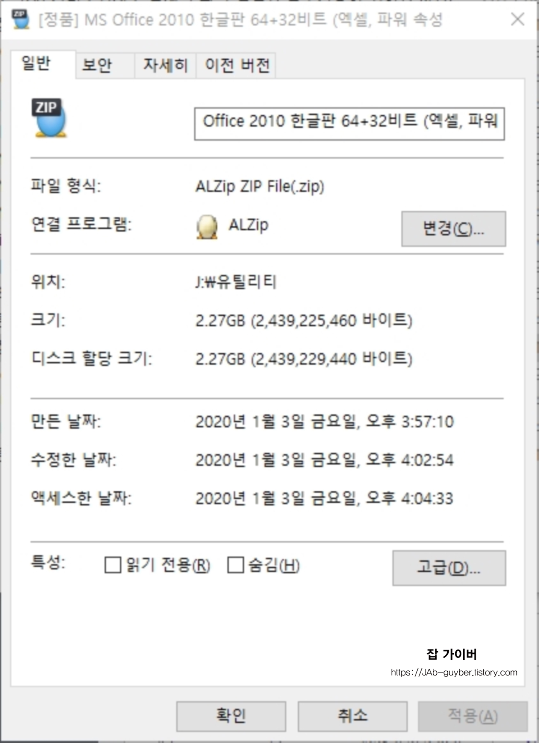 제가 다운로드한 office 2010 한글판 64bit와 32bit 모두 동봉된 파일 기준 2.27gb로 용량이 요즘 출시되는 제품에 비해 가벼운것을 볼 수 있습니다.