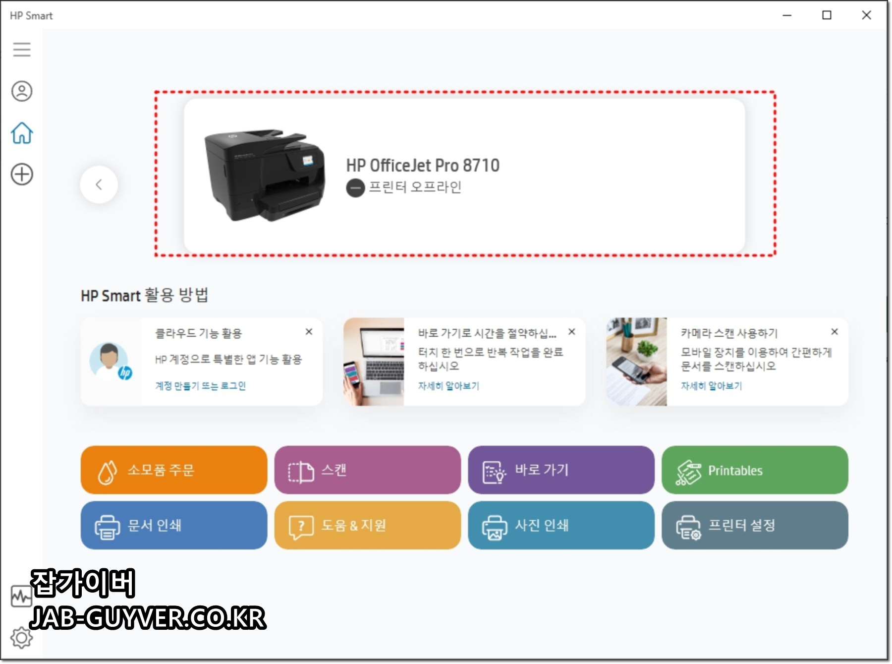 윈도우에서는 인쇄 오류로만 보이지만, HP Smart 같은 제조사 앱은 오프라인, 연결 끊김, 잉크/커버/용지 같은 원인을 더 명확히 보여주는 경우가 많습니다.