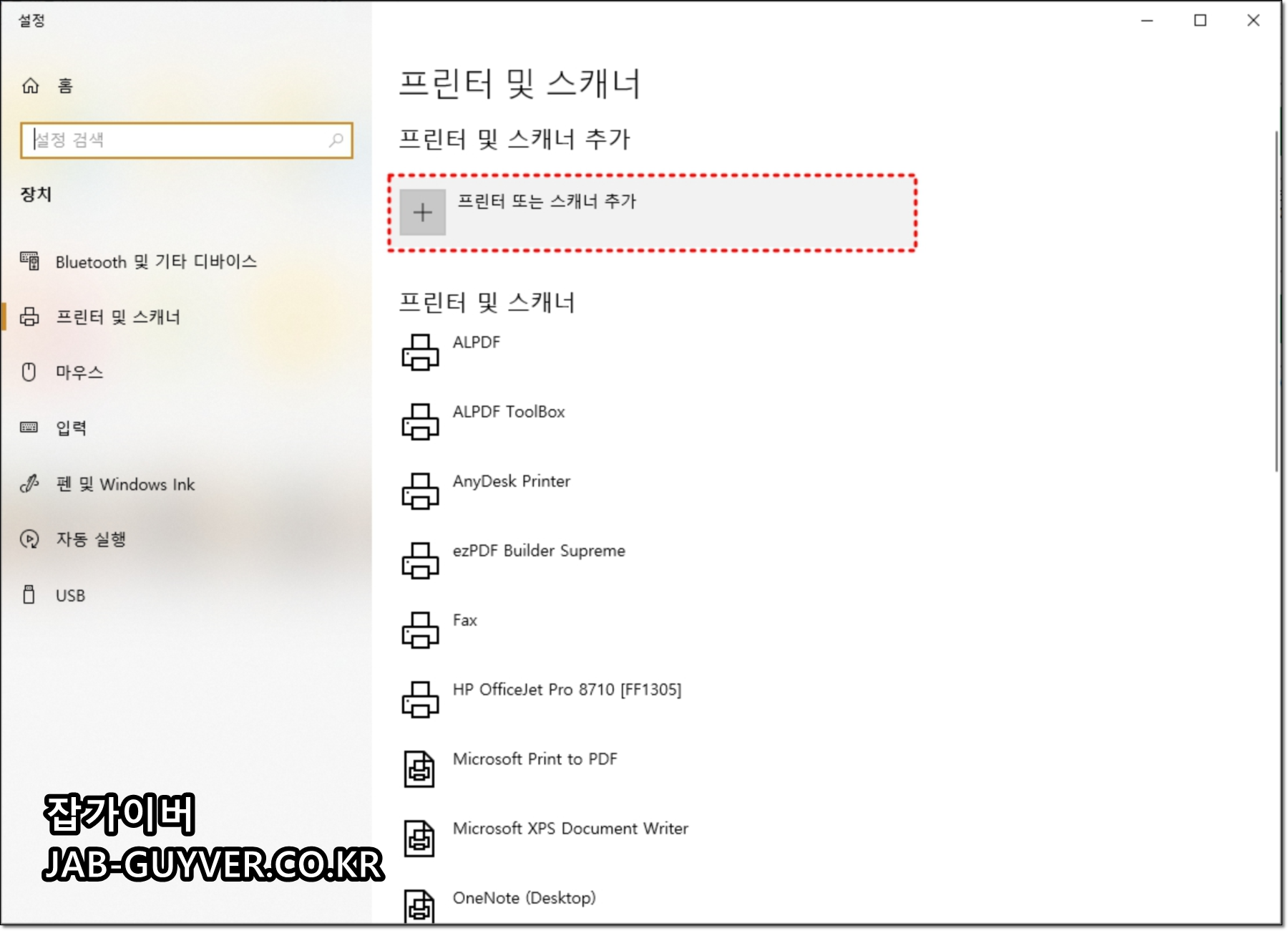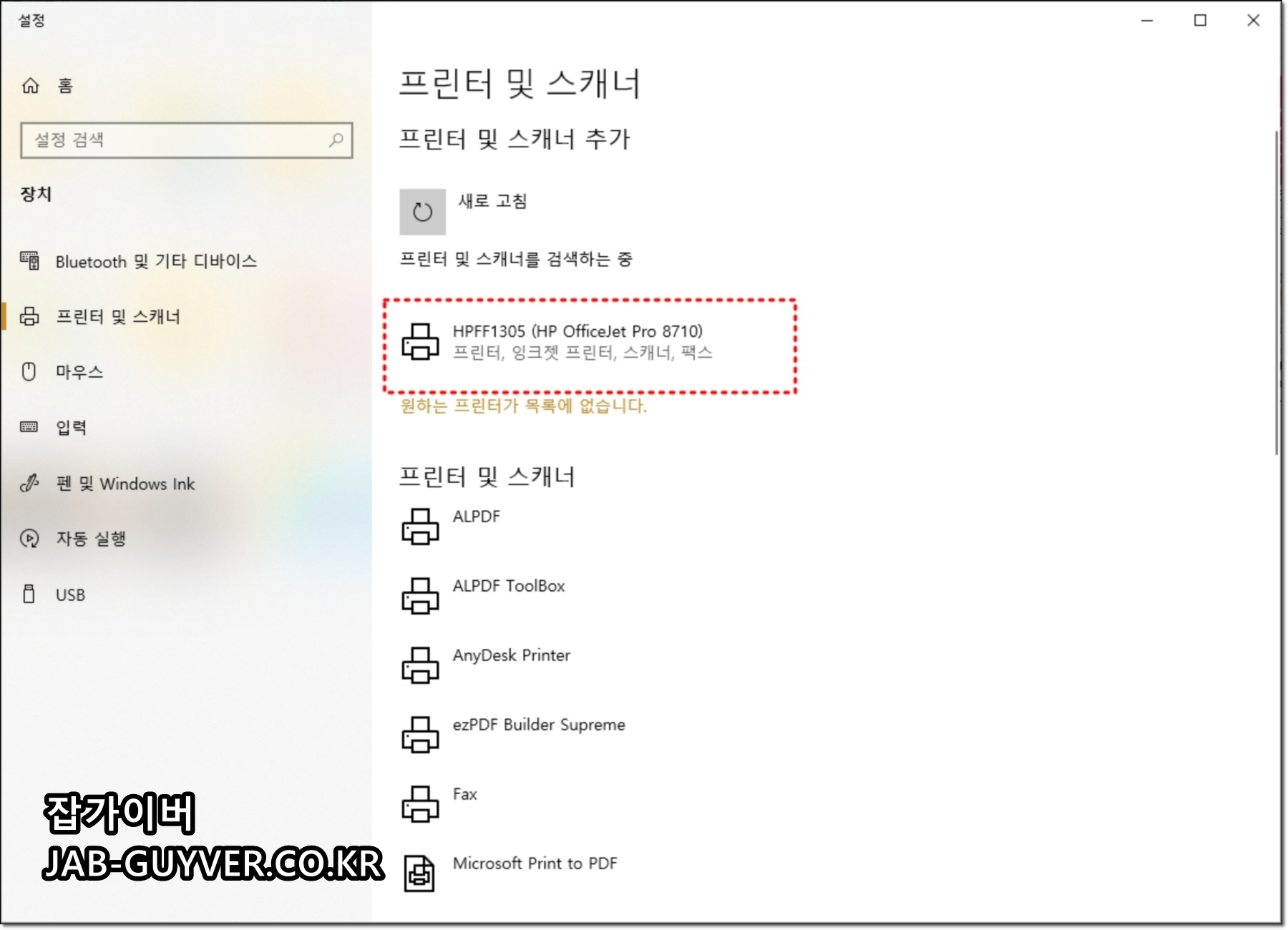 - 동일 모델 프린터가 여러 개(중복 등록)라면 중복 장치 제거