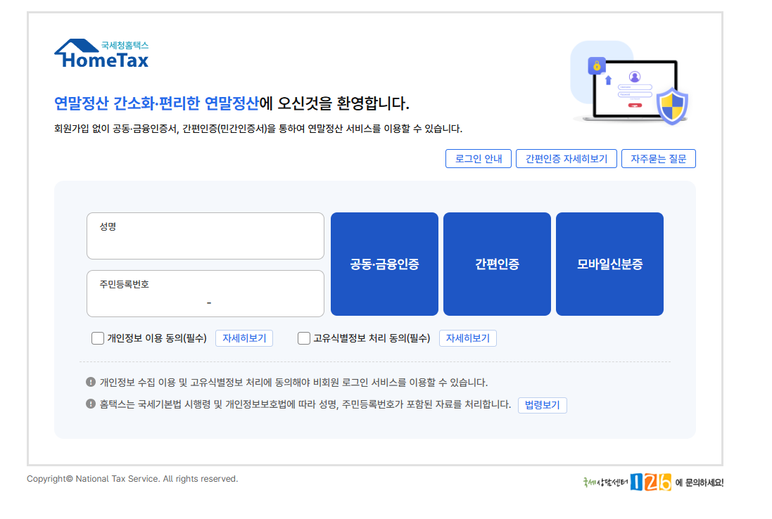 - 간편인증(카카오/네이버/통신사), 공동·금융인증서로 로그인하면 자료 조회/발급이 바로 됩니다.
