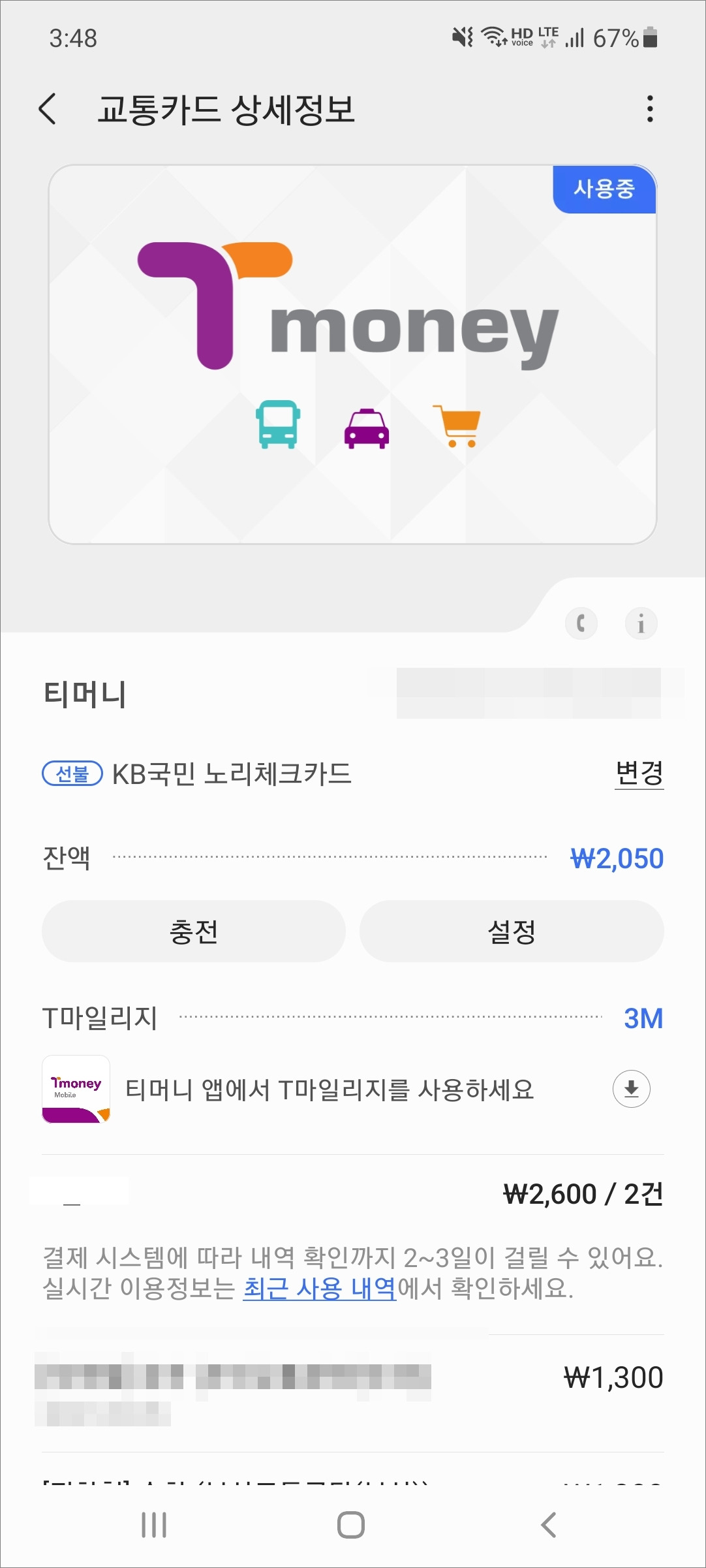 삼성페이 교통카드 환불 (티머니 기준으로 예시)