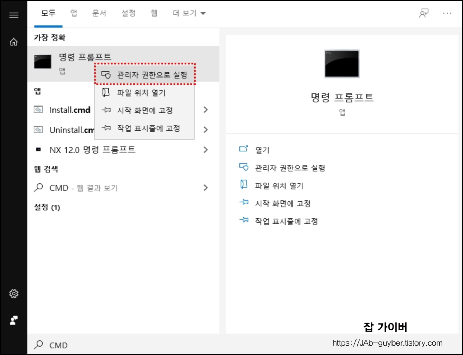 프로그램 실행은 마우스 우클릭 후 관리자 권한으로 실행합니다.