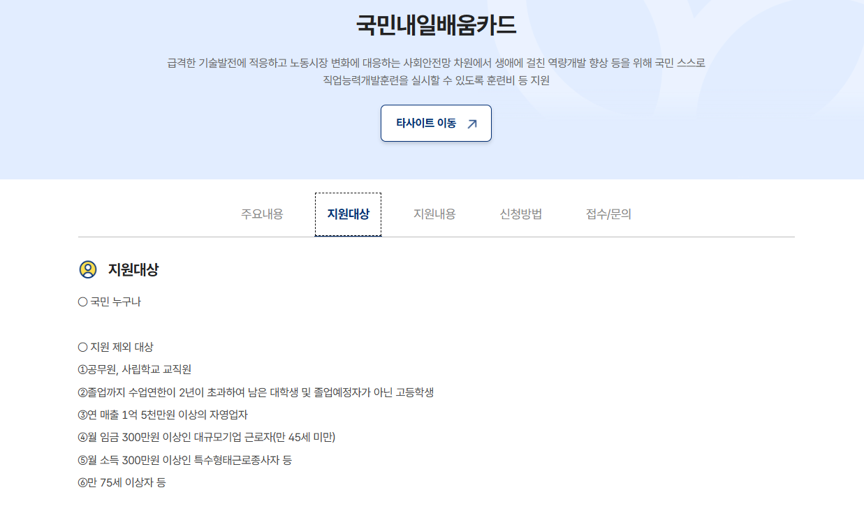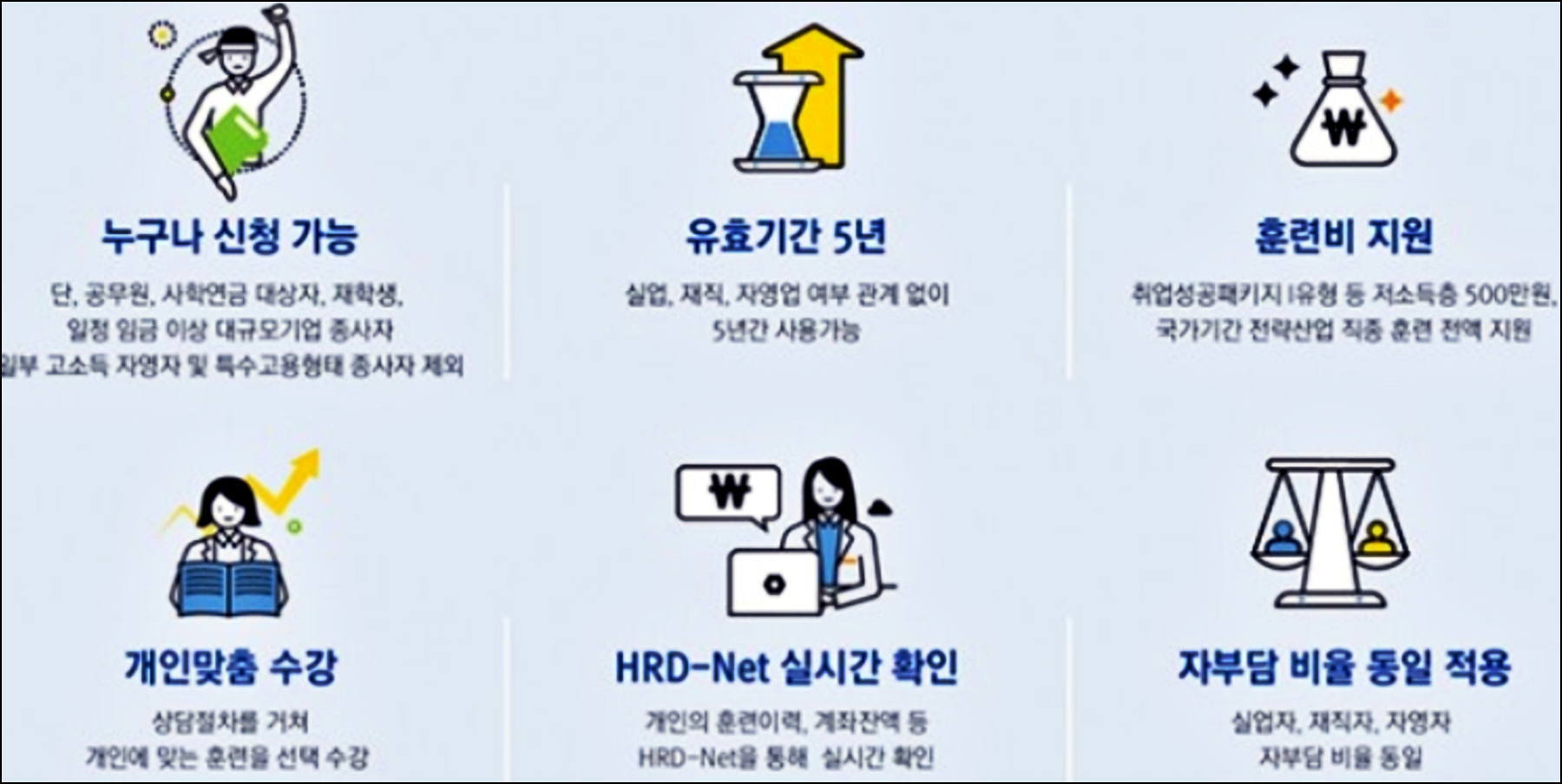 ▶️1인당 5년간 300~500만 원 한도 내에서 훈련비의 45~85%를 지급합니다